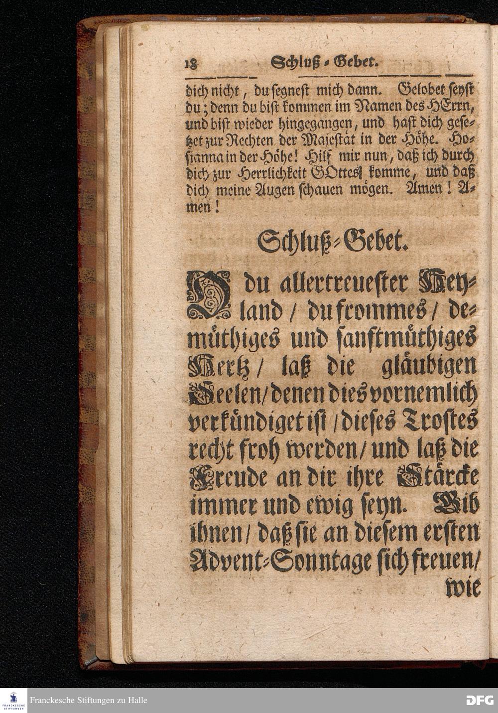 Die Gläubige Zueignung des Göttlichen Raths in Christi Zukunft zur Tochter Zion / Aus dem Evangelischen Text Matth.XXI, 1--9. Am 1.Sonntage des Advents MDCCXVI. In der St.Ulrichs=Kirchen in Halle vorgestellet von August Hermann Francken / S.Theol.Prof.& Past.zu S.Ulrich, und des Gymnasii Scholarcha. HALLE, Gedruckt und zu finden im Wäysen=Hause. 1716.