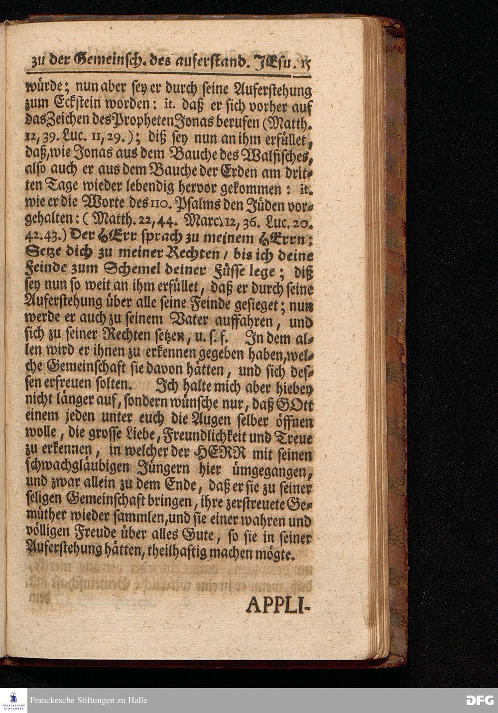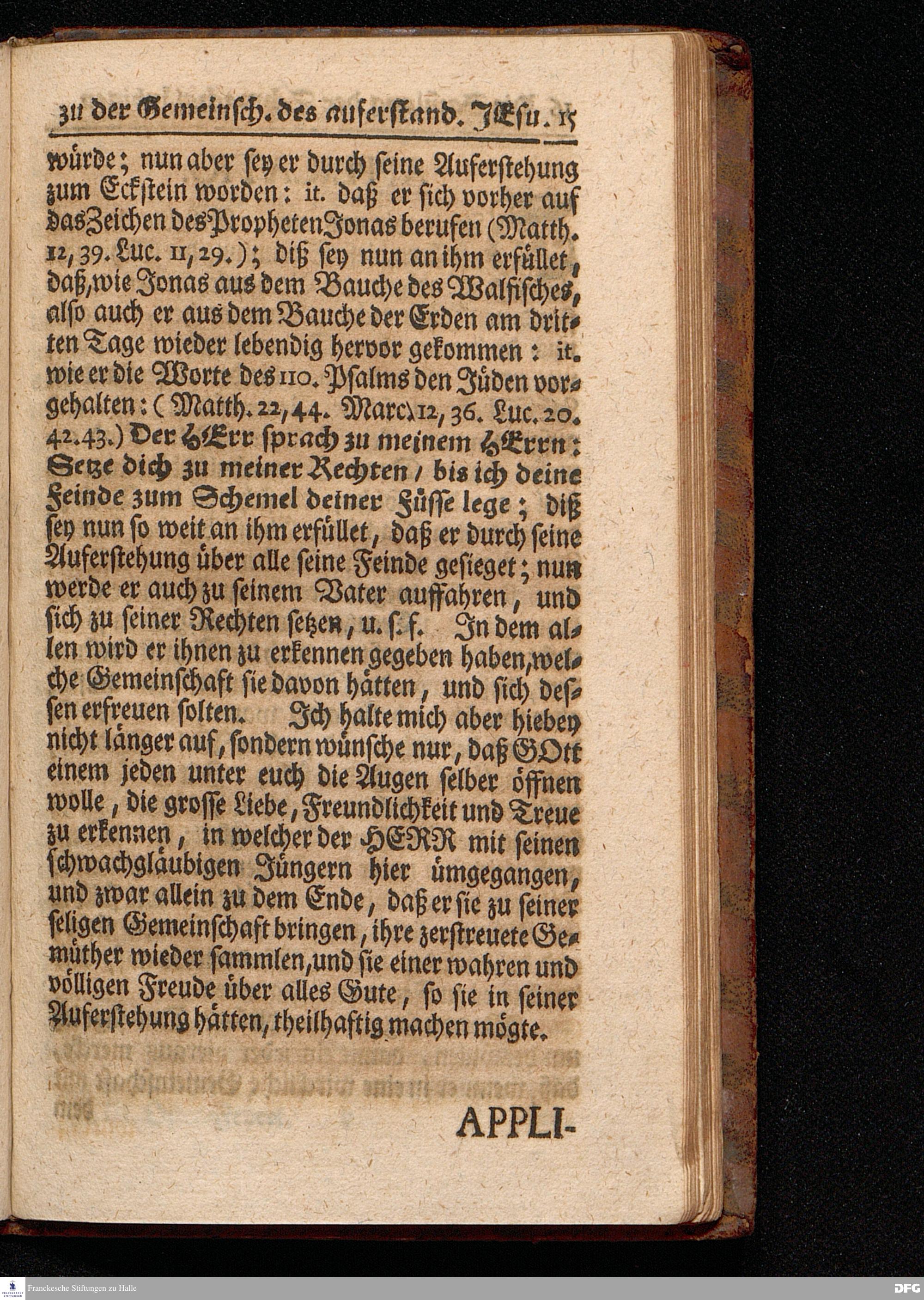 Die Sa\-mlung der Schwachgläubigen zu der Gemeinschaft des auferstandenen JESU / Aus dem Evangelischen Text Luc.XXIV, 36--47. Am III.Oster=Feyertage MDCCXVII. In der St.Ulrichs=Kirchen in Halle vorgestellet von August Hermann Francken / S.Theol.Prof.& Past.zu S.Ulrich, und des Gymnasii Scholarcha. HALLE, Gedruckt und zu finden im Wäysen=Hause, 1717.