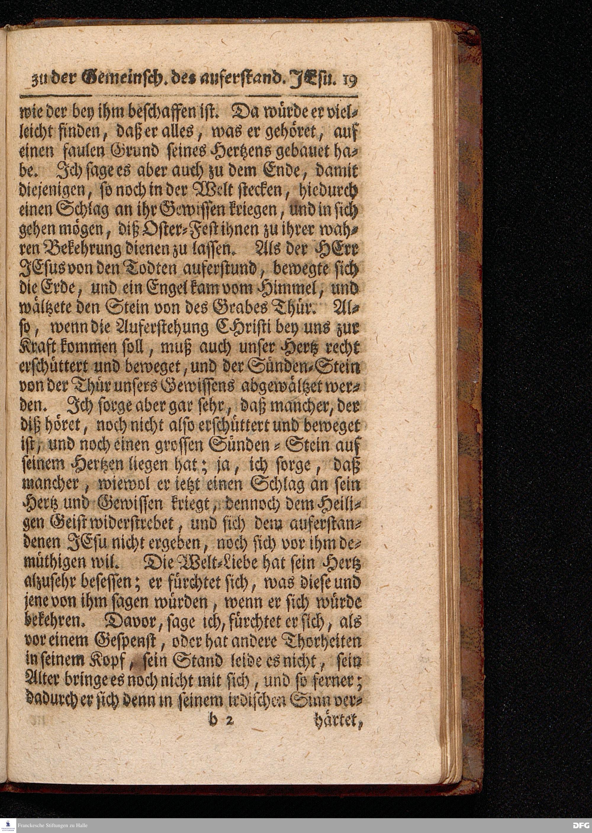 Die Sa\-mlung der Schwachgläubigen zu der Gemeinschaft des auferstandenen JESU / Aus dem Evangelischen Text Luc.XXIV, 36--47. Am III.Oster=Feyertage MDCCXVII. In der St.Ulrichs=Kirchen in Halle vorgestellet von August Hermann Francken / S.Theol.Prof.& Past.zu S.Ulrich, und des Gymnasii Scholarcha. HALLE, Gedruckt und zu finden im Wäysen=Hause, 1717.