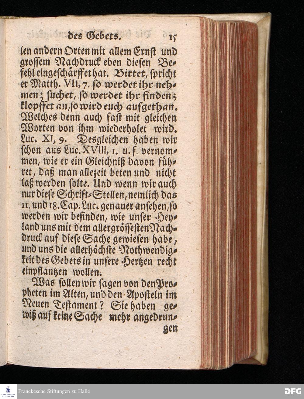 Des Gebets hohe Nothwendigkeit, wahre Beschaffenheit, und herrliche Frucht, Am Sonntage Rogate 1719. Aus Joh.16, 23-30. In einer zu Mörseburg von der Hochfürstlichen Herrschaft gnädigst aufgetragenen, und in der Domkirchen daselbst abgelegten Predigt vorgestellet, und auf Erfordern zum Druck gegeben von August Hermann Francken / S.Th.Prof.& Past.zu S.Ulrich, und des Gymnasii Scholarcha. Andere Auflage. HALLE In Verlegung des Wäysenhauses, 1723.