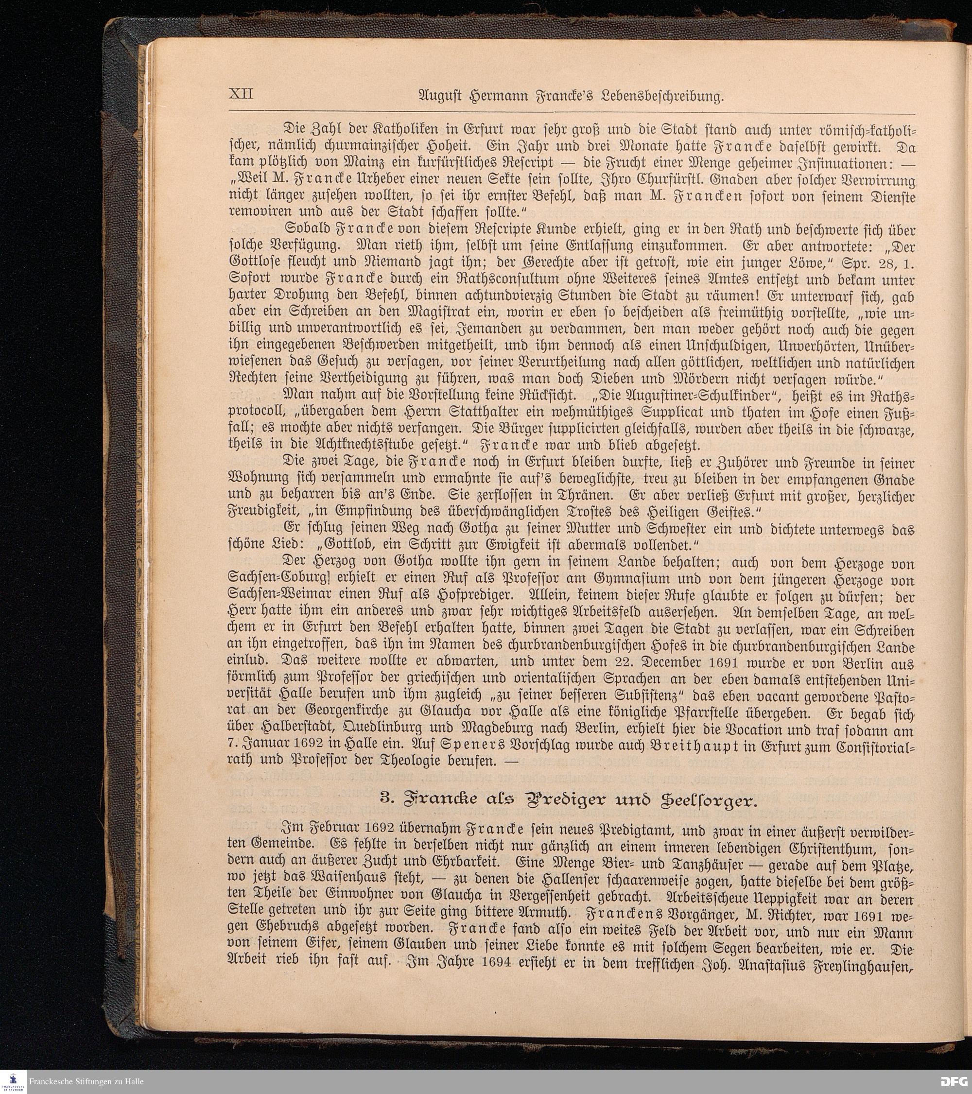 August Hermann Francke's weil.d.Theol.Prof.u.Pastor in Halle a.S., Sonn-, Fest- u. Aposteltags-Predigten, darinnen die zum wahren Christenthum gehörigen und vornehmsten Lehren behandelt sind. Aufs neue herausgegeben, verlegt und nur allein zu beziehen vom Ostpr.evang.Gebets=Verein in Berlin, Anklamstraße 31. Tilsit 1902. Gedruckt bei M. Jagomast.