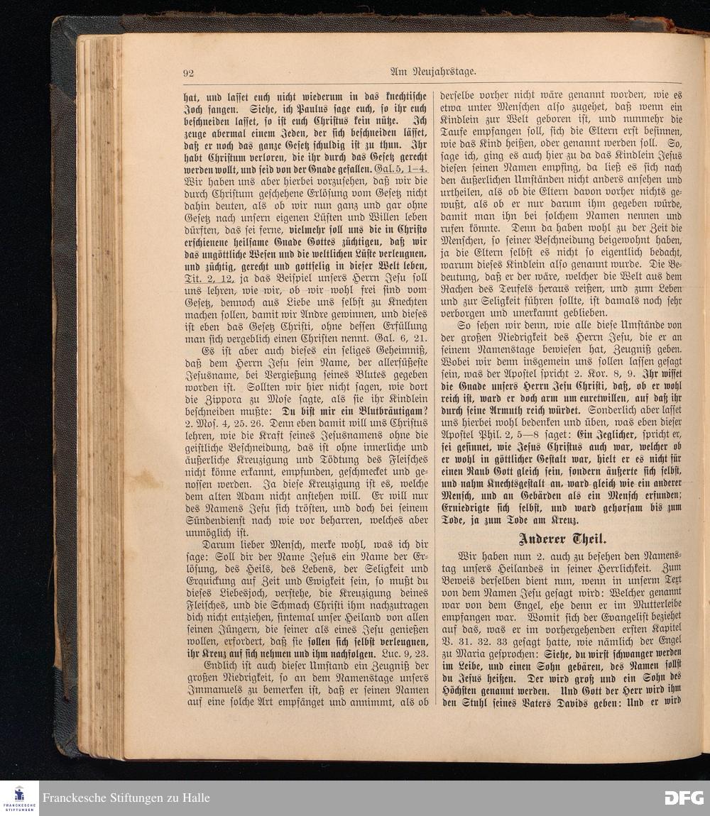 August Hermann Francke's weil.d.Theol.Prof.u.Pastor in Halle a.S., Sonn-, Fest- u. Aposteltags-Predigten, darinnen die zum wahren Christenthum gehörigen und vornehmsten Lehren behandelt sind. Aufs neue herausgegeben, verlegt und nur allein zu beziehen vom Ostpr.evang.Gebets=Verein in Berlin, Anklamstraße 31. Tilsit 1902. Gedruckt bei M. Jagomast.