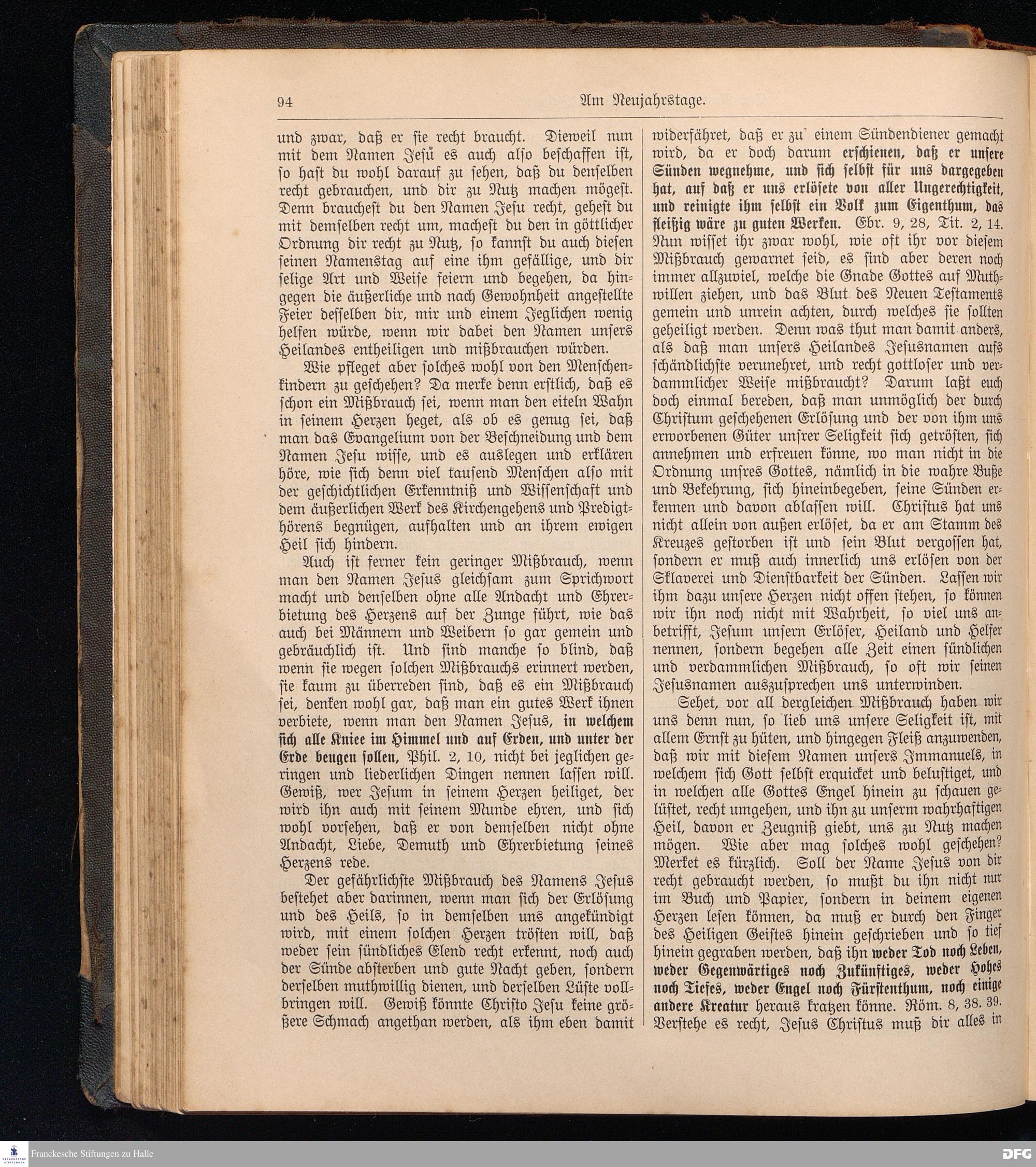 August Hermann Francke's weil.d.Theol.Prof.u.Pastor in Halle a.S., Sonn-, Fest- u. Aposteltags-Predigten, darinnen die zum wahren Christenthum gehörigen und vornehmsten Lehren behandelt sind. Aufs neue herausgegeben, verlegt und nur allein zu beziehen vom Ostpr.evang.Gebets=Verein in Berlin, Anklamstraße 31. Tilsit 1902. Gedruckt bei M. Jagomast.