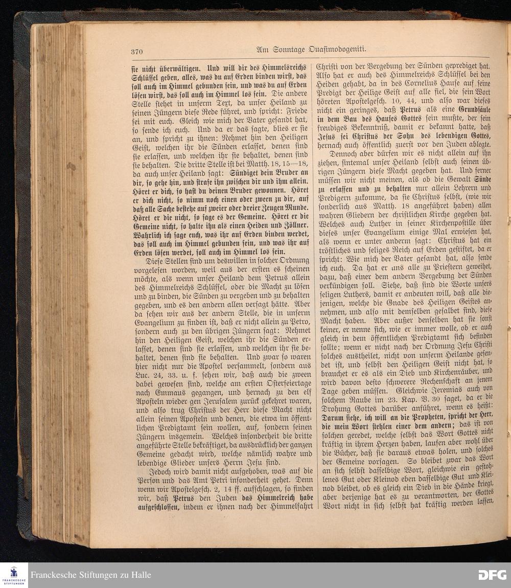 August Hermann Francke's weil.d.Theol.Prof.u.Pastor in Halle a.S., Sonn-, Fest- u. Aposteltags-Predigten, darinnen die zum wahren Christenthum gehörigen und vornehmsten Lehren behandelt sind. Aufs neue herausgegeben, verlegt und nur allein zu beziehen vom Ostpr.evang.Gebets=Verein in Berlin, Anklamstraße 31. Tilsit 1902. Gedruckt bei M. Jagomast.