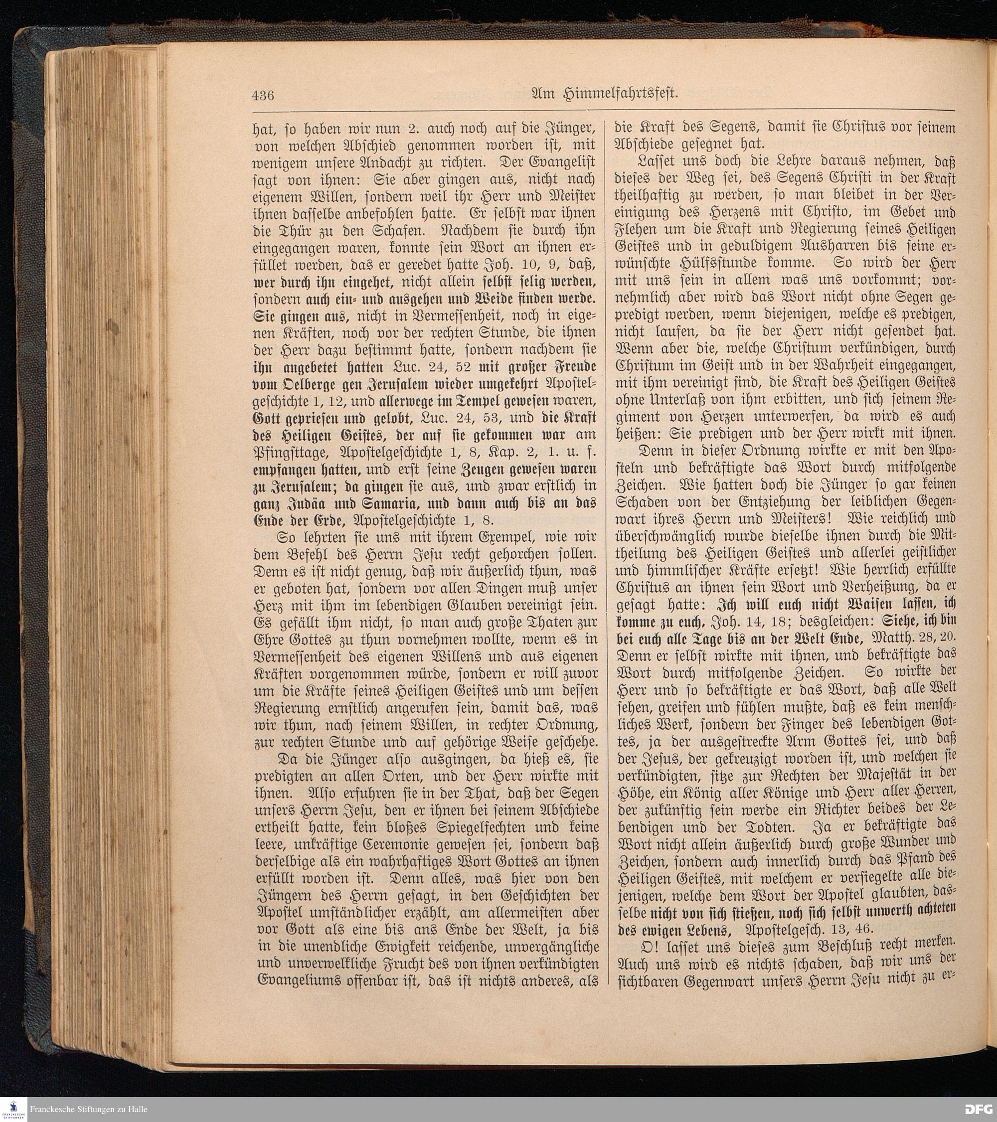 August Hermann Francke's weil.d.Theol.Prof.u.Pastor in Halle a.S., Sonn-, Fest- u. Aposteltags-Predigten, darinnen die zum wahren Christenthum gehörigen und vornehmsten Lehren behandelt sind. Aufs neue herausgegeben, verlegt und nur allein zu beziehen vom Ostpr.evang.Gebets=Verein in Berlin, Anklamstraße 31. Tilsit 1902. Gedruckt bei M. Jagomast.