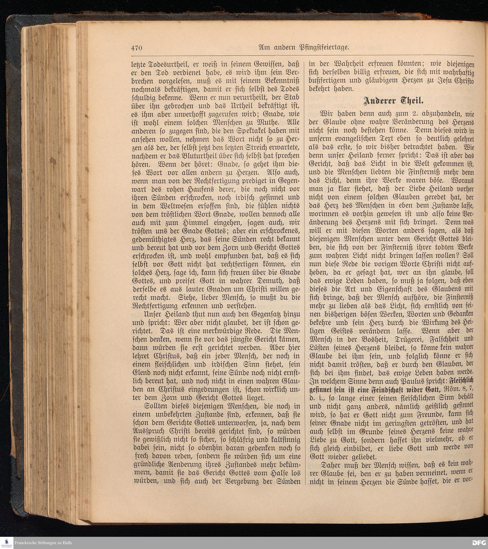August Hermann Francke's weil.d.Theol.Prof.u.Pastor in Halle a.S., Sonn-, Fest- u. Aposteltags-Predigten, darinnen die zum wahren Christenthum gehörigen und vornehmsten Lehren behandelt sind. Aufs neue herausgegeben, verlegt und nur allein zu beziehen vom Ostpr.evang.Gebets=Verein in Berlin, Anklamstraße 31. Tilsit 1902. Gedruckt bei M. Jagomast.