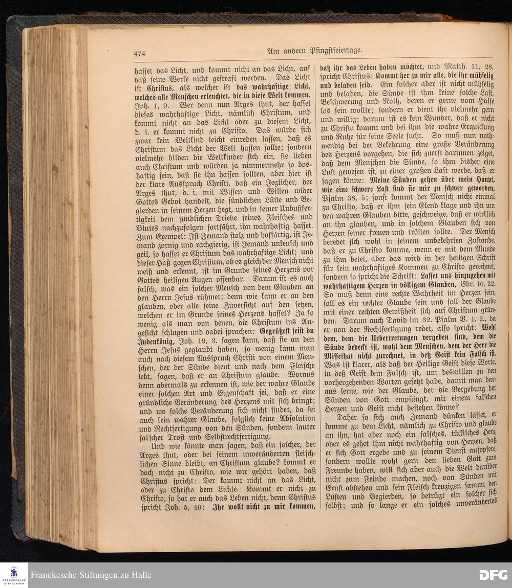 August Hermann Francke's weil.d.Theol.Prof.u.Pastor in Halle a.S., Sonn-, Fest- u. Aposteltags-Predigten, darinnen die zum wahren Christenthum gehörigen und vornehmsten Lehren behandelt sind. Aufs neue herausgegeben, verlegt und nur allein zu beziehen vom Ostpr.evang.Gebets=Verein in Berlin, Anklamstraße 31. Tilsit 1902. Gedruckt bei M. Jagomast.