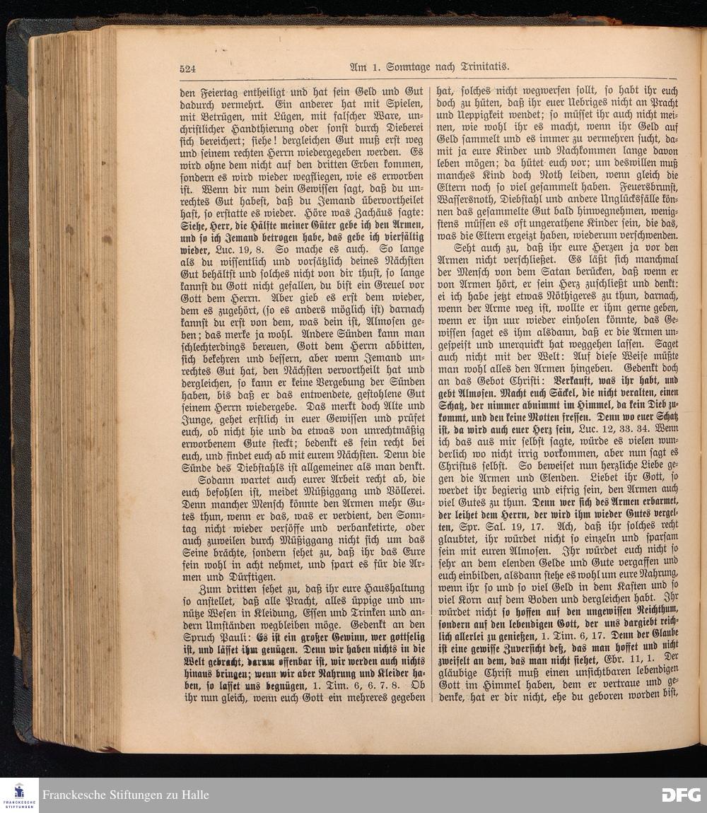 August Hermann Francke's weil.d.Theol.Prof.u.Pastor in Halle a.S., Sonn-, Fest- u. Aposteltags-Predigten, darinnen die zum wahren Christenthum gehörigen und vornehmsten Lehren behandelt sind. Aufs neue herausgegeben, verlegt und nur allein zu beziehen vom Ostpr.evang.Gebets=Verein in Berlin, Anklamstraße 31. Tilsit 1902. Gedruckt bei M. Jagomast.