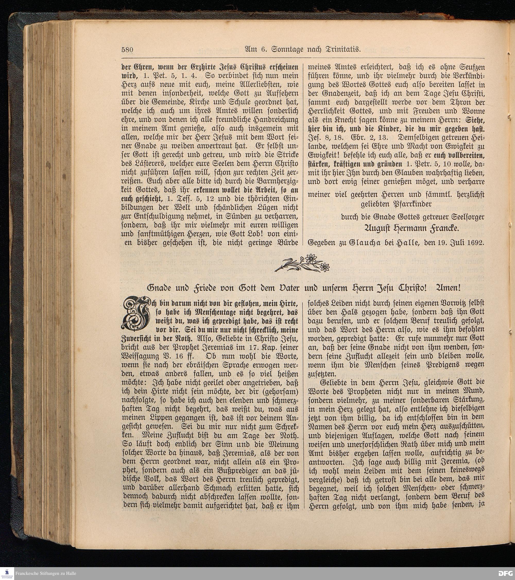 August Hermann Francke's weil.d.Theol.Prof.u.Pastor in Halle a.S., Sonn-, Fest- u. Aposteltags-Predigten, darinnen die zum wahren Christenthum gehörigen und vornehmsten Lehren behandelt sind. Aufs neue herausgegeben, verlegt und nur allein zu beziehen vom Ostpr.evang.Gebets=Verein in Berlin, Anklamstraße 31. Tilsit 1902. Gedruckt bei M. Jagomast.