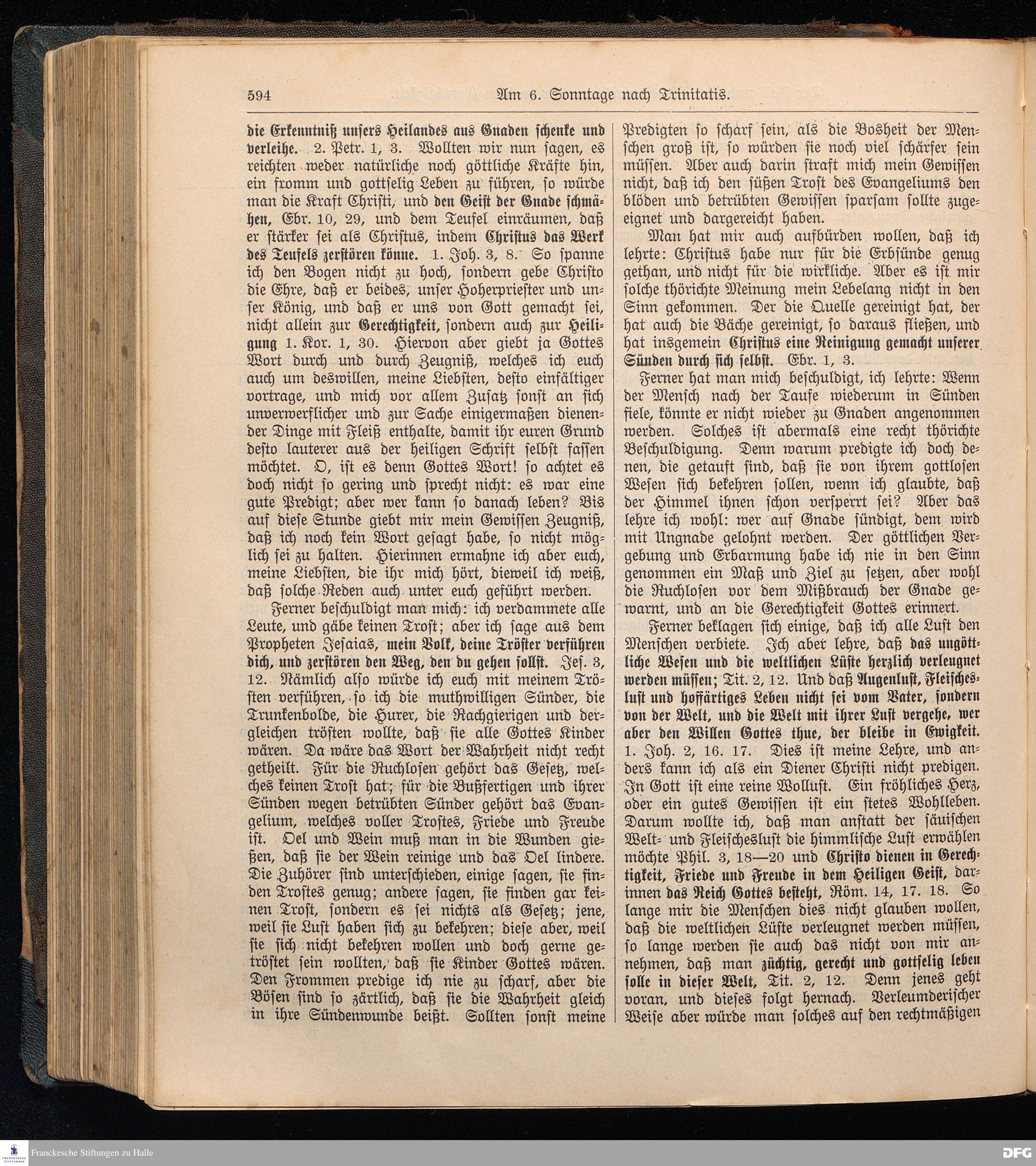 August Hermann Francke's weil.d.Theol.Prof.u.Pastor in Halle a.S., Sonn-, Fest- u. Aposteltags-Predigten, darinnen die zum wahren Christenthum gehörigen und vornehmsten Lehren behandelt sind. Aufs neue herausgegeben, verlegt und nur allein zu beziehen vom Ostpr.evang.Gebets=Verein in Berlin, Anklamstraße 31. Tilsit 1902. Gedruckt bei M. Jagomast.