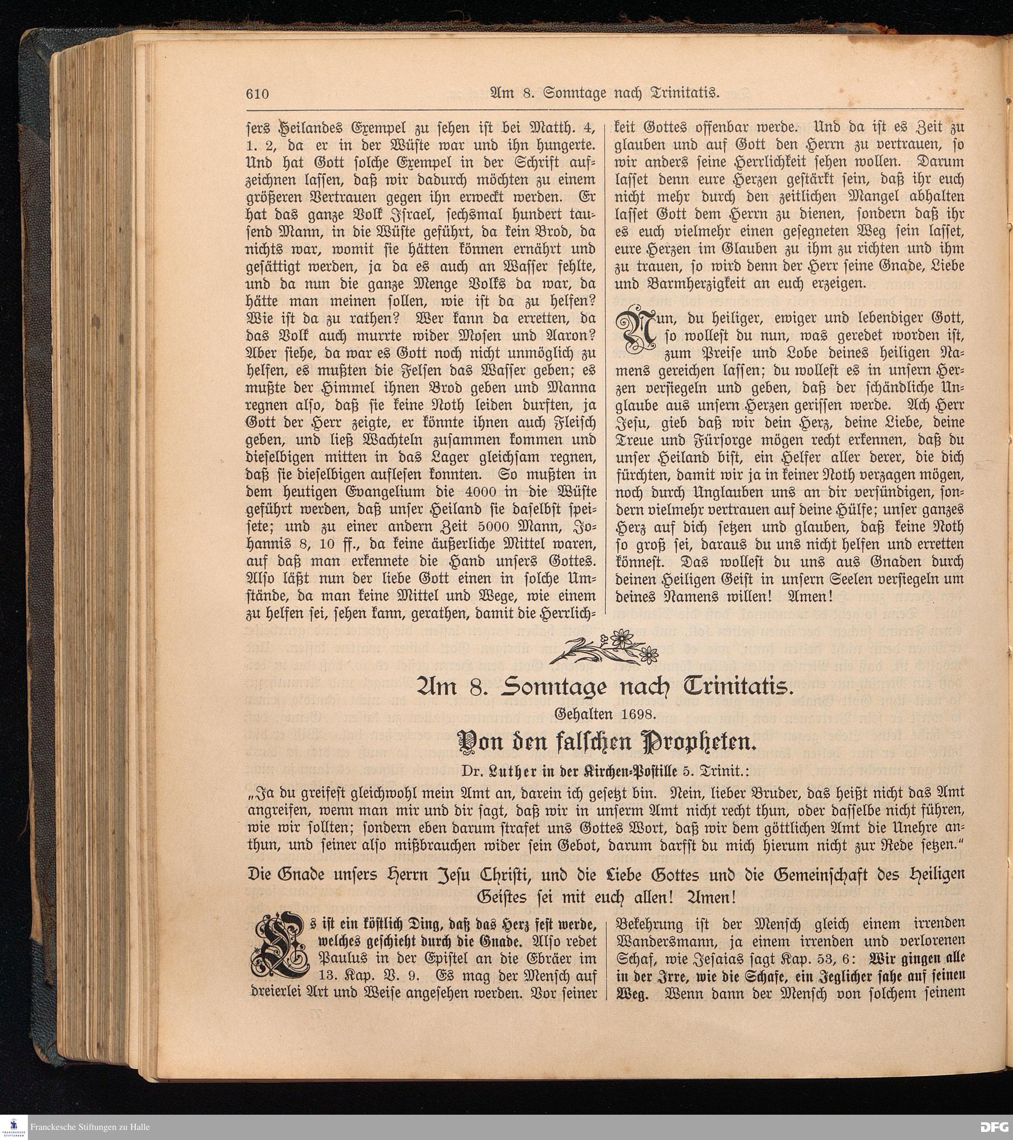 August Hermann Francke's weil.d.Theol.Prof.u.Pastor in Halle a.S., Sonn-, Fest- u. Aposteltags-Predigten, darinnen die zum wahren Christenthum gehörigen und vornehmsten Lehren behandelt sind. Aufs neue herausgegeben, verlegt und nur allein zu beziehen vom Ostpr.evang.Gebets=Verein in Berlin, Anklamstraße 31. Tilsit 1902. Gedruckt bei M. Jagomast.