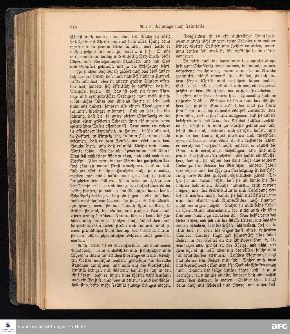 August Hermann Francke's weil.d.Theol.Prof.u.Pastor in Halle a.S., Sonn-, Fest- u. Aposteltags-Predigten, darinnen die zum wahren Christenthum gehörigen und vornehmsten Lehren behandelt sind. Aufs neue herausgegeben, verlegt und nur allein zu beziehen vom Ostpr.evang.Gebets=Verein in Berlin, Anklamstraße 31. Tilsit 1902. Gedruckt bei M. Jagomast.