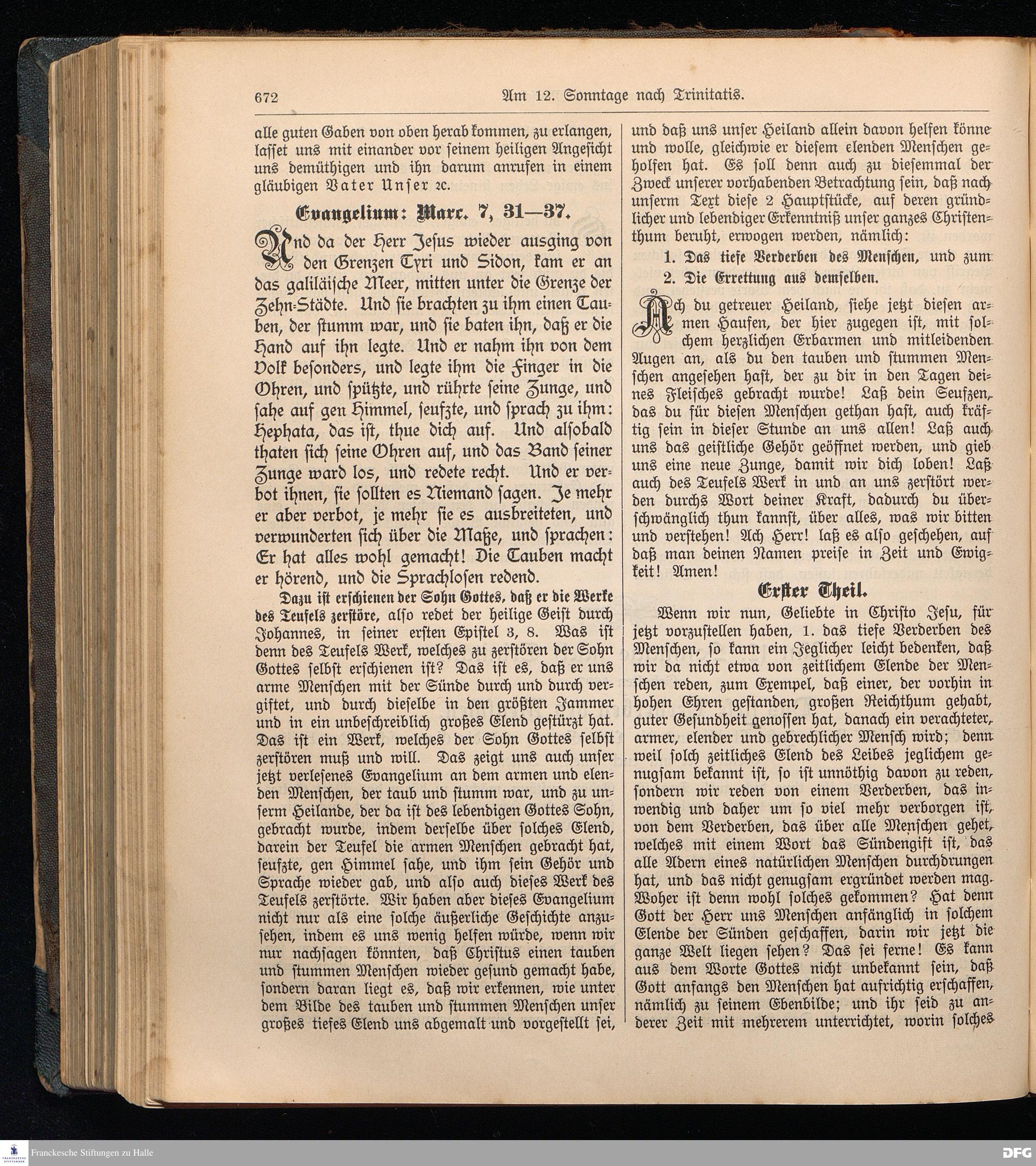 August Hermann Francke's weil.d.Theol.Prof.u.Pastor in Halle a.S., Sonn-, Fest- u. Aposteltags-Predigten, darinnen die zum wahren Christenthum gehörigen und vornehmsten Lehren behandelt sind. Aufs neue herausgegeben, verlegt und nur allein zu beziehen vom Ostpr.evang.Gebets=Verein in Berlin, Anklamstraße 31. Tilsit 1902. Gedruckt bei M. Jagomast.