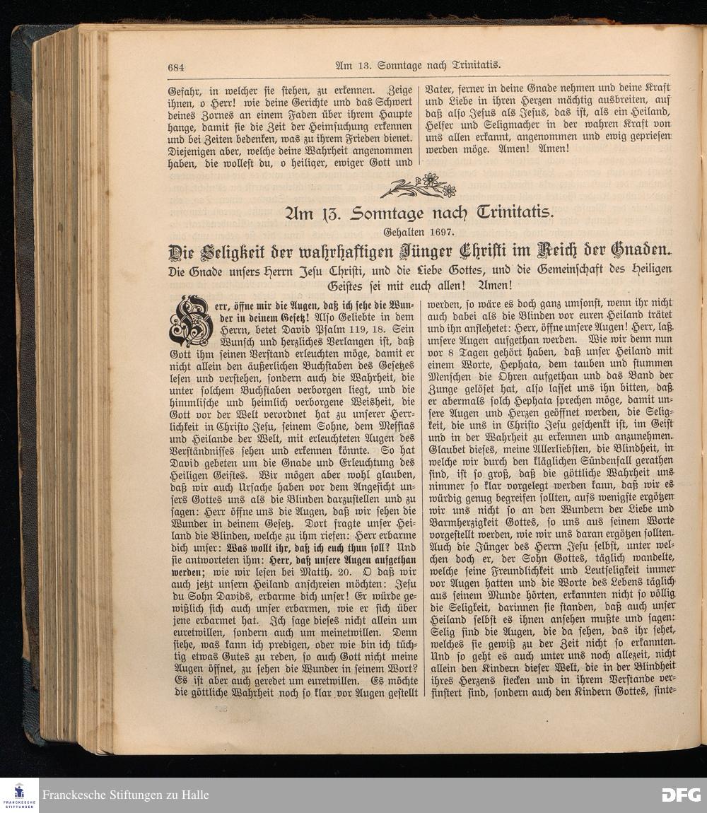 August Hermann Francke's weil.d.Theol.Prof.u.Pastor in Halle a.S., Sonn-, Fest- u. Aposteltags-Predigten, darinnen die zum wahren Christenthum gehörigen und vornehmsten Lehren behandelt sind. Aufs neue herausgegeben, verlegt und nur allein zu beziehen vom Ostpr.evang.Gebets=Verein in Berlin, Anklamstraße 31. Tilsit 1902. Gedruckt bei M. Jagomast.