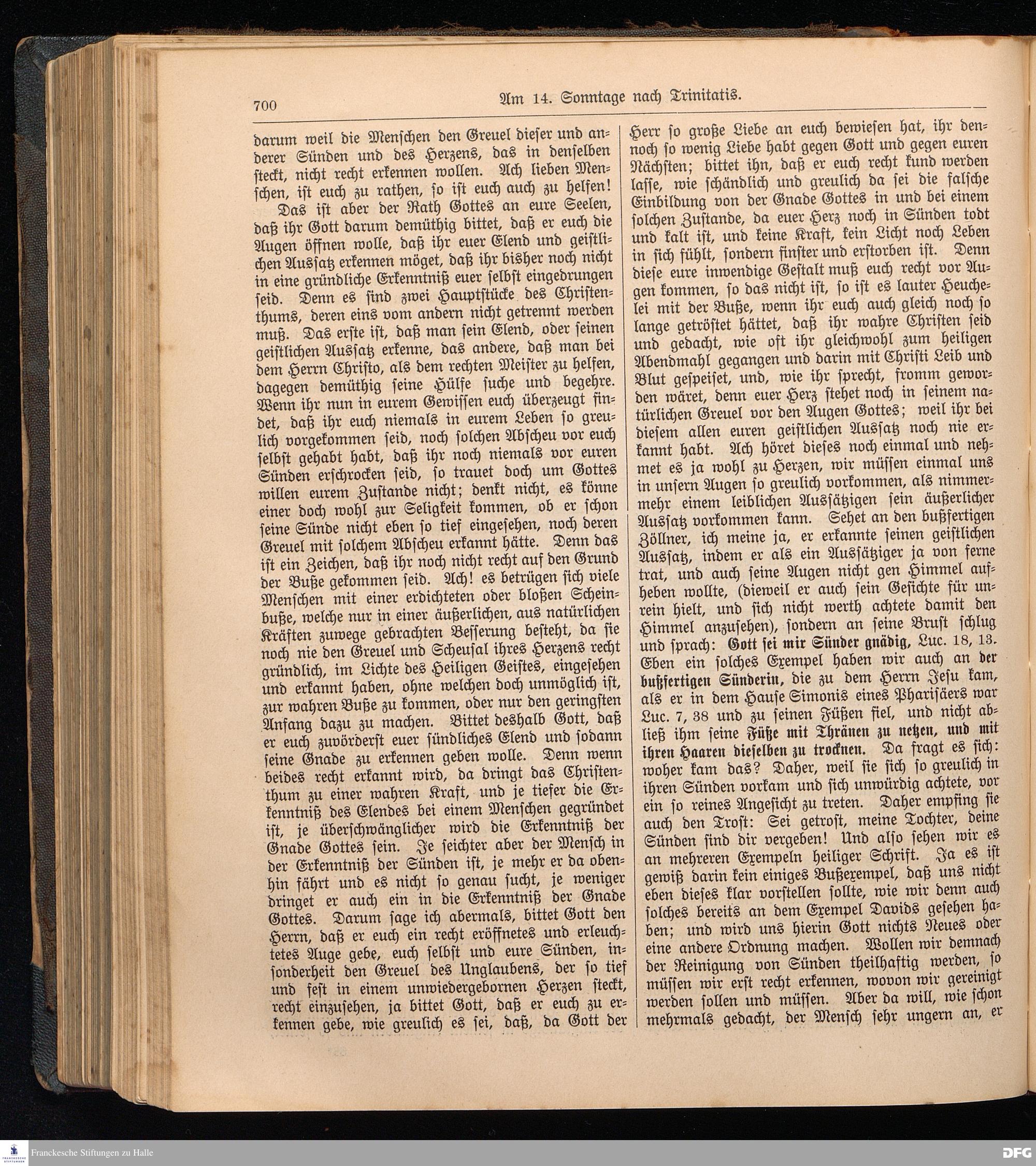 August Hermann Francke's weil.d.Theol.Prof.u.Pastor in Halle a.S., Sonn-, Fest- u. Aposteltags-Predigten, darinnen die zum wahren Christenthum gehörigen und vornehmsten Lehren behandelt sind. Aufs neue herausgegeben, verlegt und nur allein zu beziehen vom Ostpr.evang.Gebets=Verein in Berlin, Anklamstraße 31. Tilsit 1902. Gedruckt bei M. Jagomast.