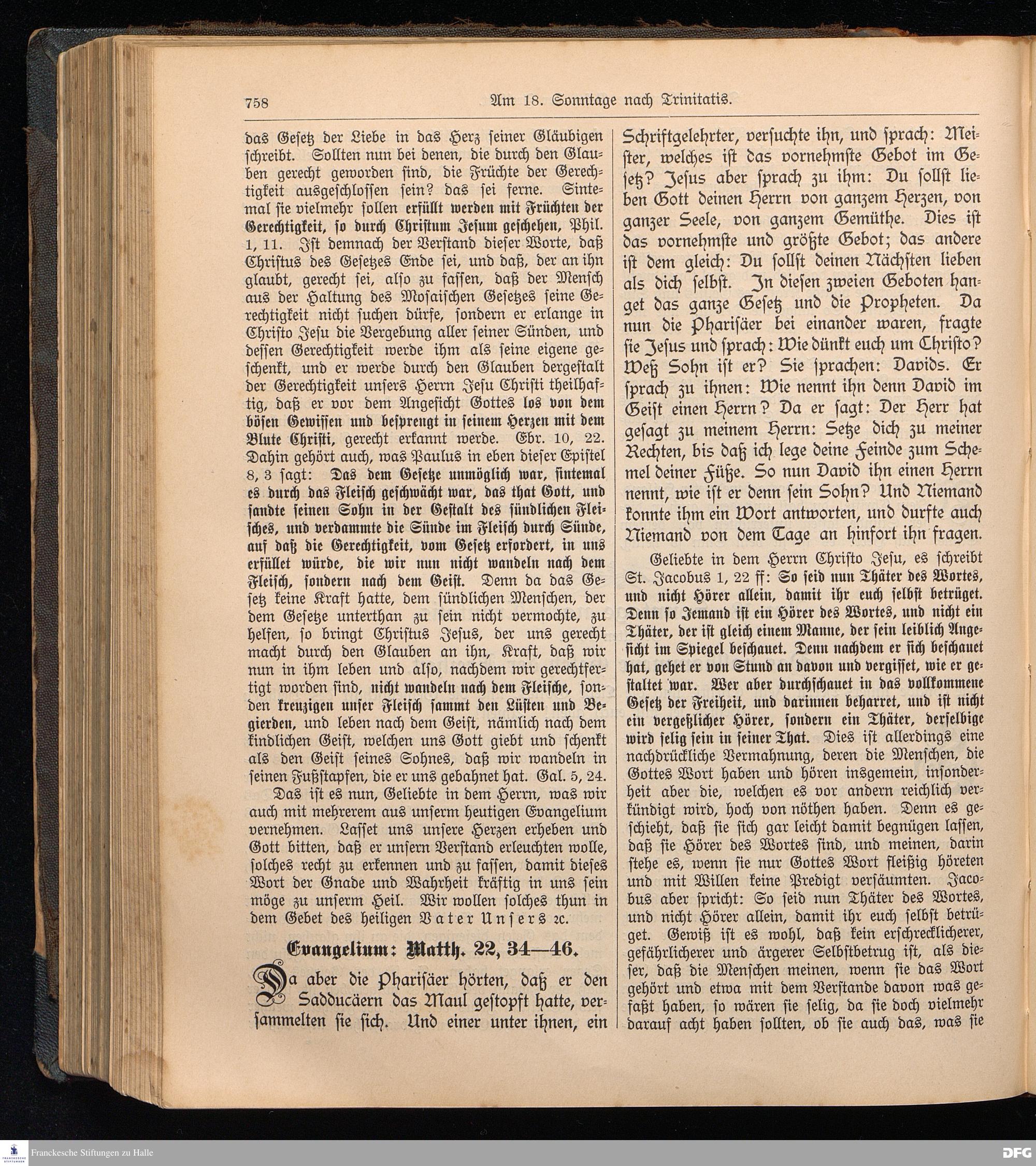 August Hermann Francke's weil.d.Theol.Prof.u.Pastor in Halle a.S., Sonn-, Fest- u. Aposteltags-Predigten, darinnen die zum wahren Christenthum gehörigen und vornehmsten Lehren behandelt sind. Aufs neue herausgegeben, verlegt und nur allein zu beziehen vom Ostpr.evang.Gebets=Verein in Berlin, Anklamstraße 31. Tilsit 1902. Gedruckt bei M. Jagomast.