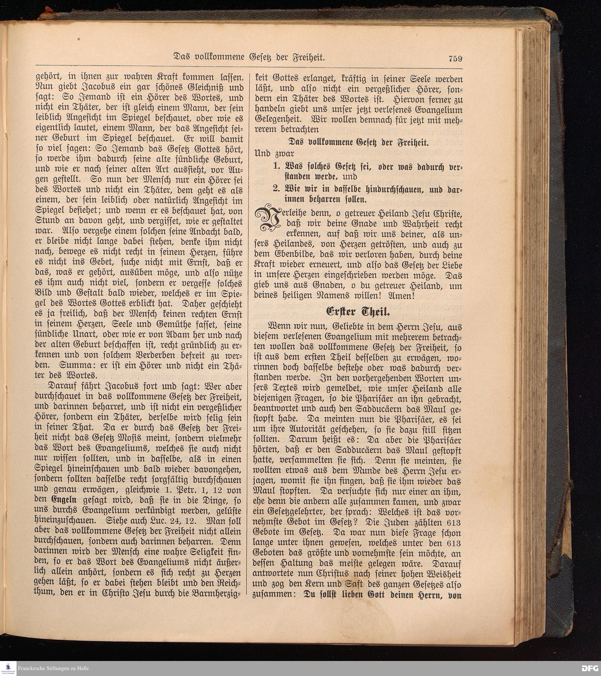 August Hermann Francke's weil.d.Theol.Prof.u.Pastor in Halle a.S., Sonn-, Fest- u. Aposteltags-Predigten, darinnen die zum wahren Christenthum gehörigen und vornehmsten Lehren behandelt sind. Aufs neue herausgegeben, verlegt und nur allein zu beziehen vom Ostpr.evang.Gebets=Verein in Berlin, Anklamstraße 31. Tilsit 1902. Gedruckt bei M. Jagomast.