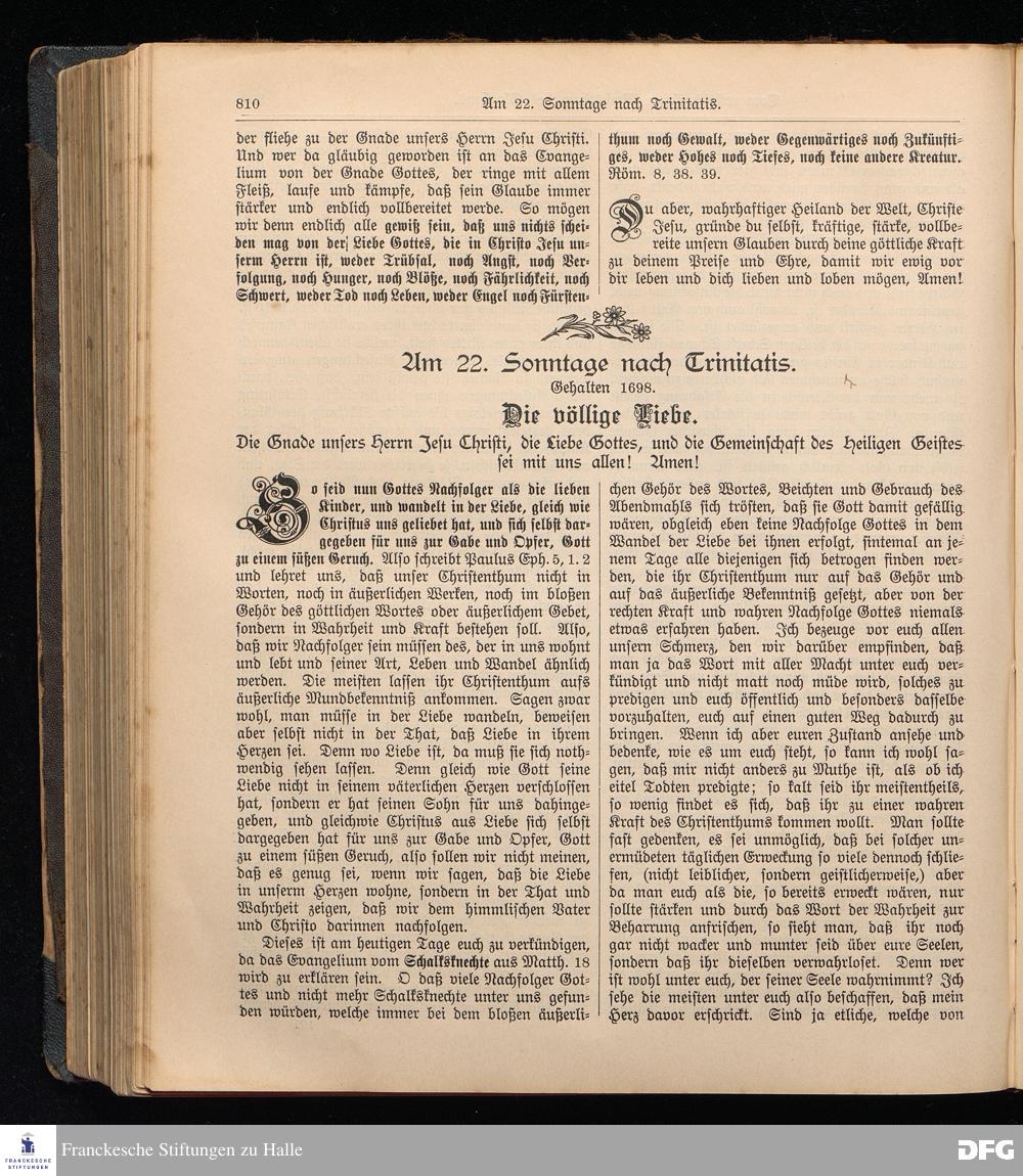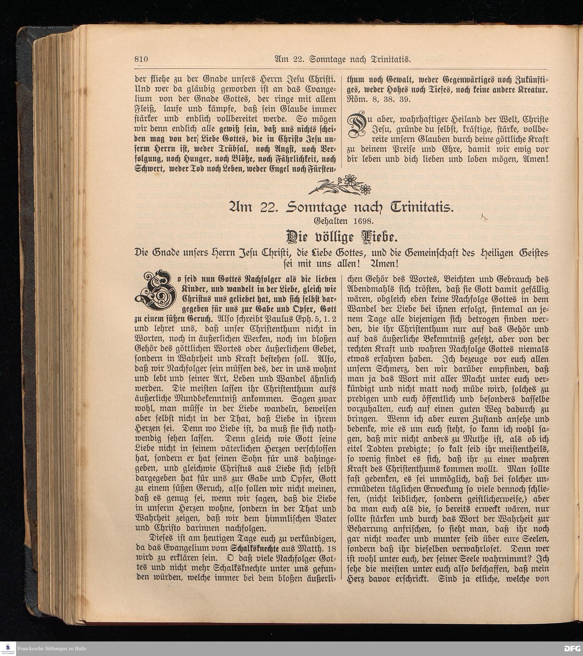 August Hermann Francke's weil.d.Theol.Prof.u.Pastor in Halle a.S., Sonn-, Fest- u. Aposteltags-Predigten, darinnen die zum wahren Christenthum gehörigen und vornehmsten Lehren behandelt sind. Aufs neue herausgegeben, verlegt und nur allein zu beziehen vom Ostpr.evang.Gebets=Verein in Berlin, Anklamstraße 31. Tilsit 1902. Gedruckt bei M. Jagomast.
