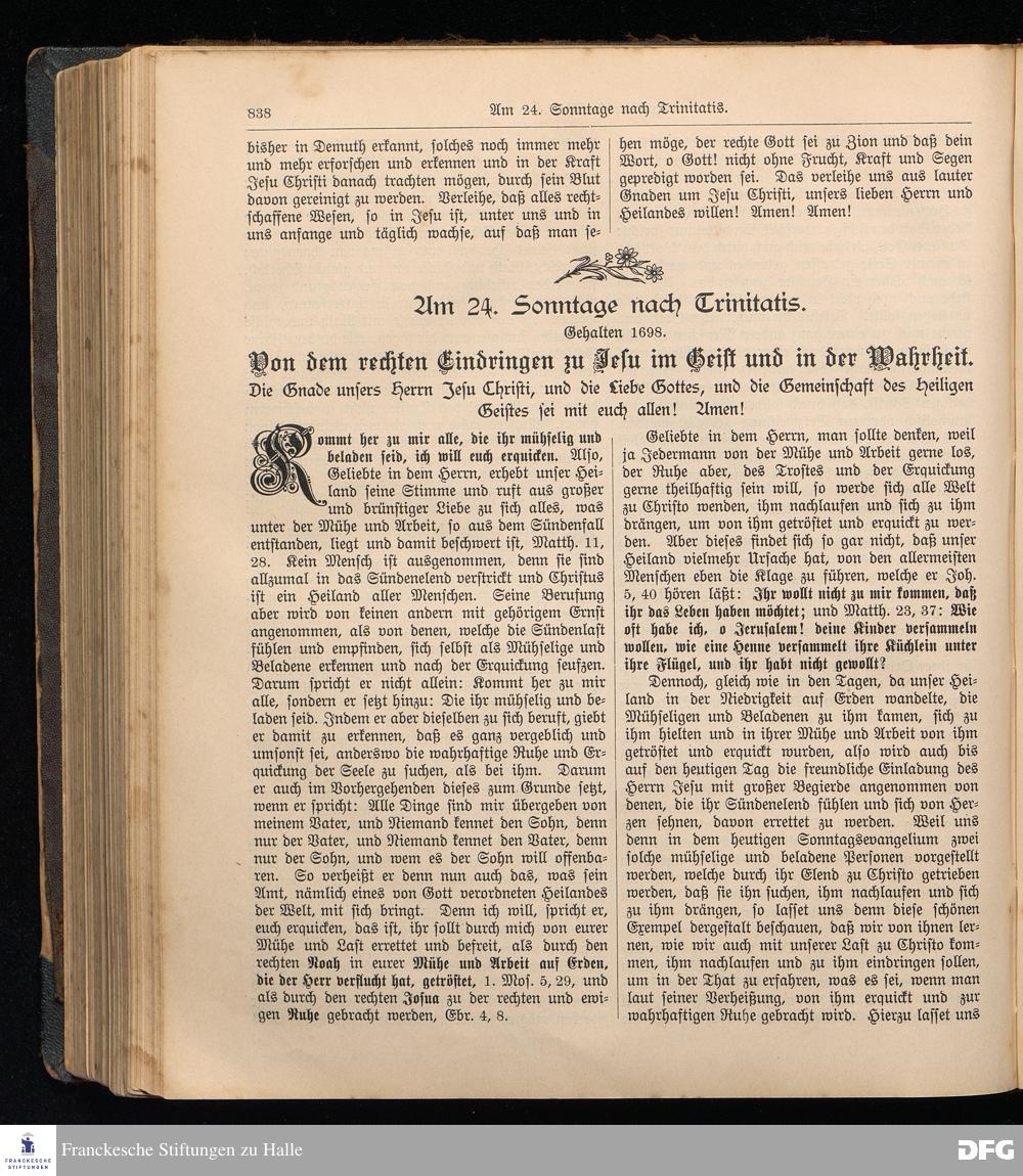 August Hermann Francke's weil.d.Theol.Prof.u.Pastor in Halle a.S., Sonn-, Fest- u. Aposteltags-Predigten, darinnen die zum wahren Christenthum gehörigen und vornehmsten Lehren behandelt sind. Aufs neue herausgegeben, verlegt und nur allein zu beziehen vom Ostpr.evang.Gebets=Verein in Berlin, Anklamstraße 31. Tilsit 1902. Gedruckt bei M. Jagomast.