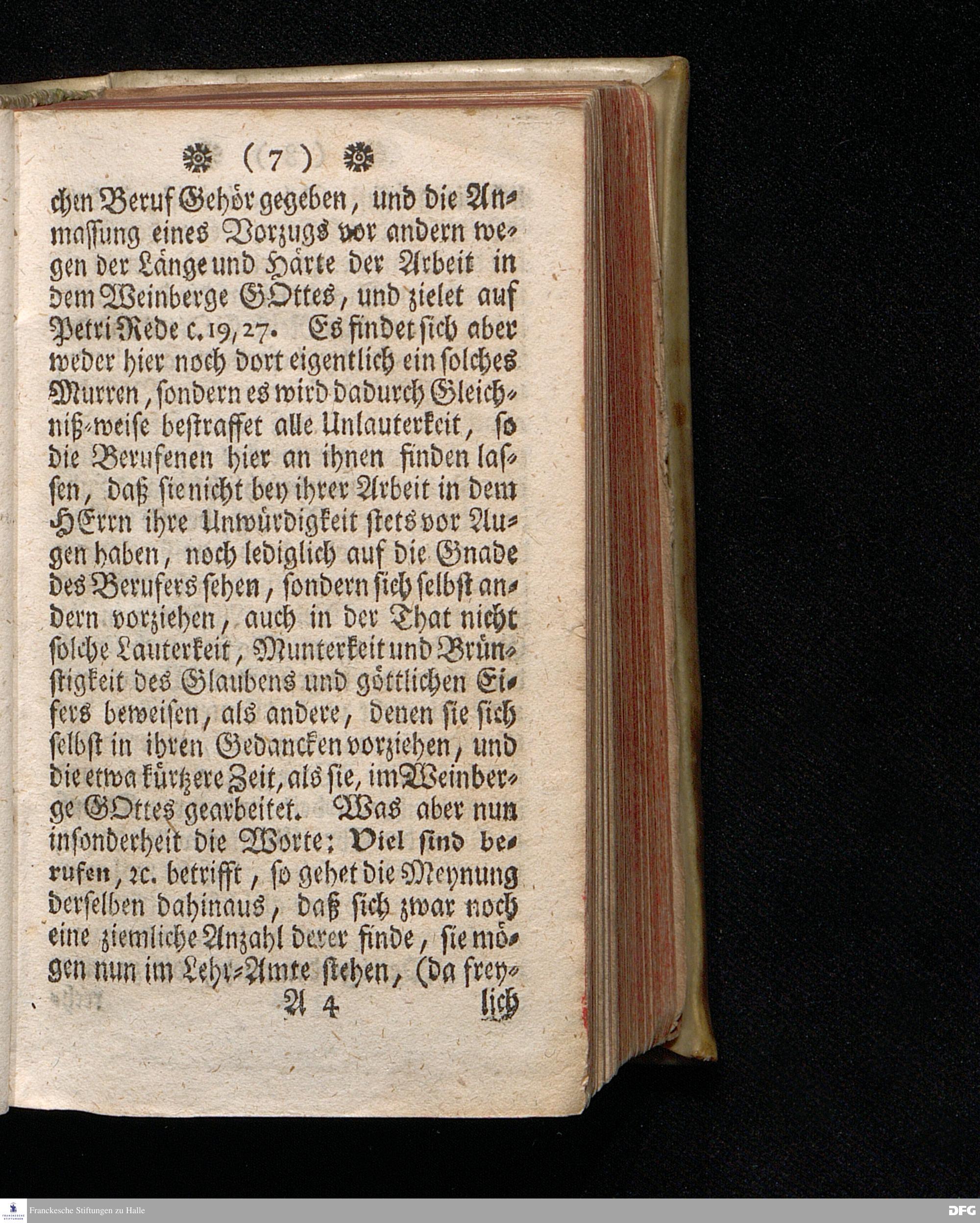 Erklärung des Spruchs Matth. 20 / 16. [Viele sind berufen / aber wenig sind auserwählet.] Auf dem Wäysen=Hause zu Glaucha An Halle Den 8.Jul.1711. ertheilet Von August Hermann Francken / S.Th.P.Ord.& Past.Glauch. Dritte Auflage. HALLE, In Verlegung des Wäysen=Hauses. MDCCXXIII.