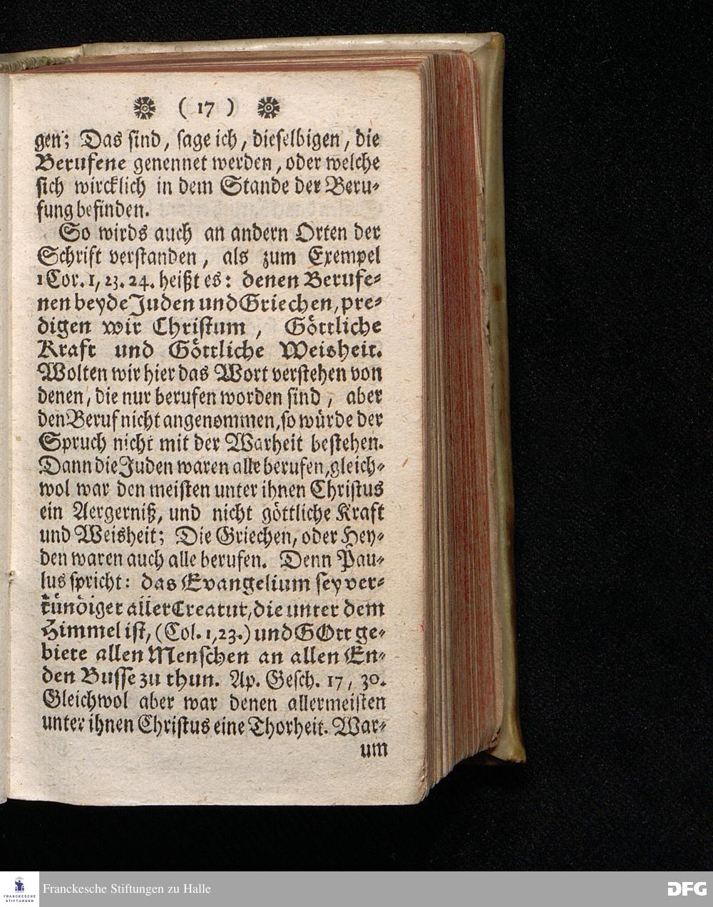Erklärung des Spruchs Matth. 20 / 16. [Viele sind berufen / aber wenig sind auserwählet.] Auf dem Wäysen=Hause zu Glaucha An Halle Den 8.Jul.1711. ertheilet Von August Hermann Francken / S.Th.P.Ord.& Past.Glauch. Dritte Auflage. HALLE, In Verlegung des Wäysen=Hauses. MDCCXXIII.
