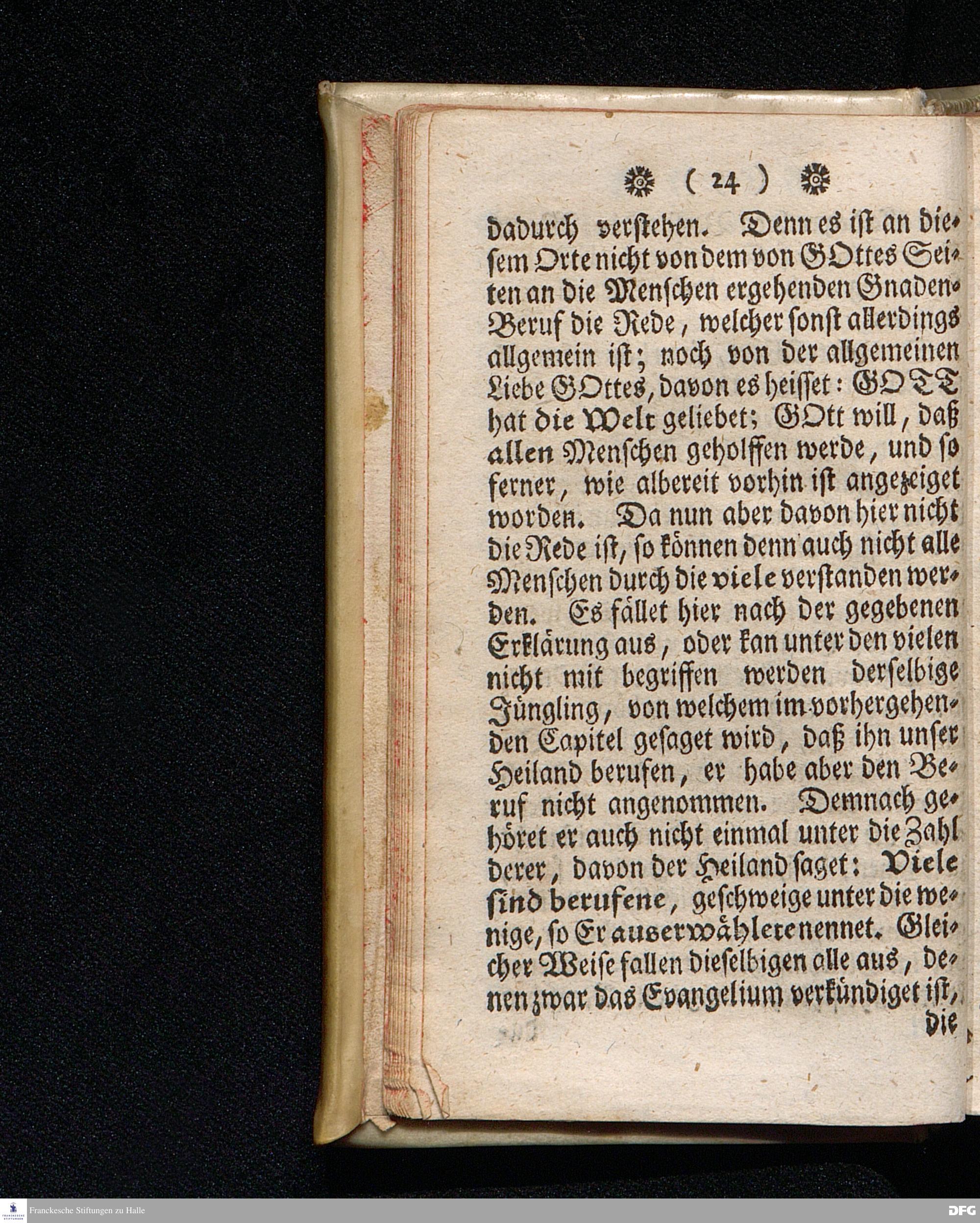 Erklärung des Spruchs Matth. 20 / 16. [Viele sind berufen / aber wenig sind auserwählet.] Auf dem Wäysen=Hause zu Glaucha An Halle Den 8.Jul.1711. ertheilet Von August Hermann Francken / S.Th.P.Ord.& Past.Glauch. Dritte Auflage. HALLE, In Verlegung des Wäysen=Hauses. MDCCXXIII.