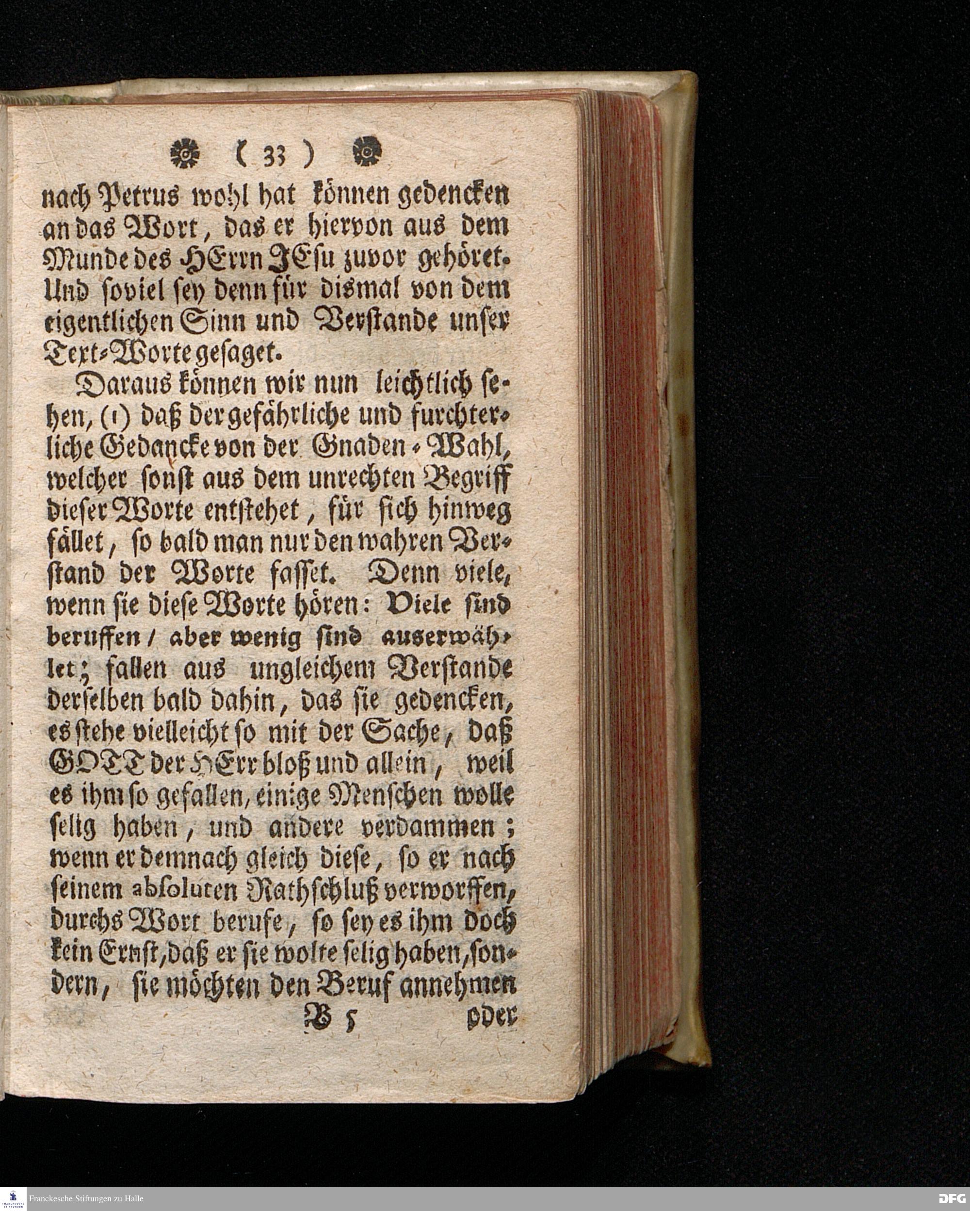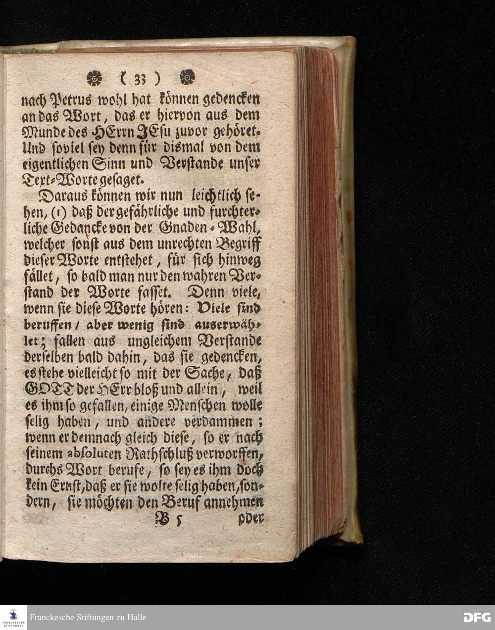 Erklärung des Spruchs Matth. 20 / 16. [Viele sind berufen / aber wenig sind auserwählet.] Auf dem Wäysen=Hause zu Glaucha An Halle Den 8.Jul.1711. ertheilet Von August Hermann Francken / S.Th.P.Ord.& Past.Glauch. Dritte Auflage. HALLE, In Verlegung des Wäysen=Hauses. MDCCXXIII.