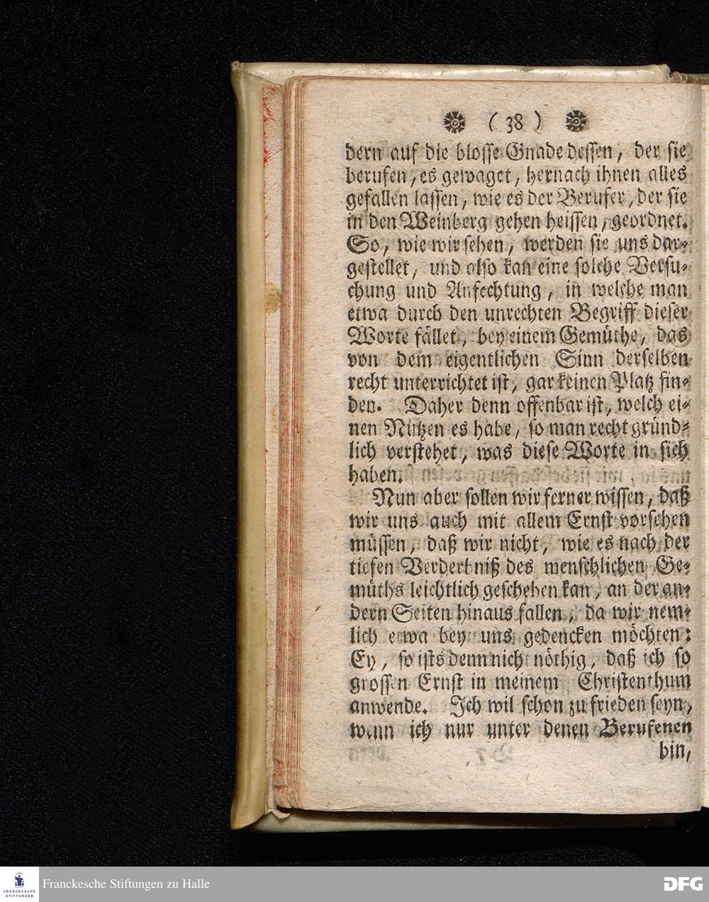 Erklärung des Spruchs Matth. 20 / 16. [Viele sind berufen / aber wenig sind auserwählet.] Auf dem Wäysen=Hause zu Glaucha An Halle Den 8.Jul.1711. ertheilet Von August Hermann Francken / S.Th.P.Ord.& Past.Glauch. Dritte Auflage. HALLE, In Verlegung des Wäysen=Hauses. MDCCXXIII.