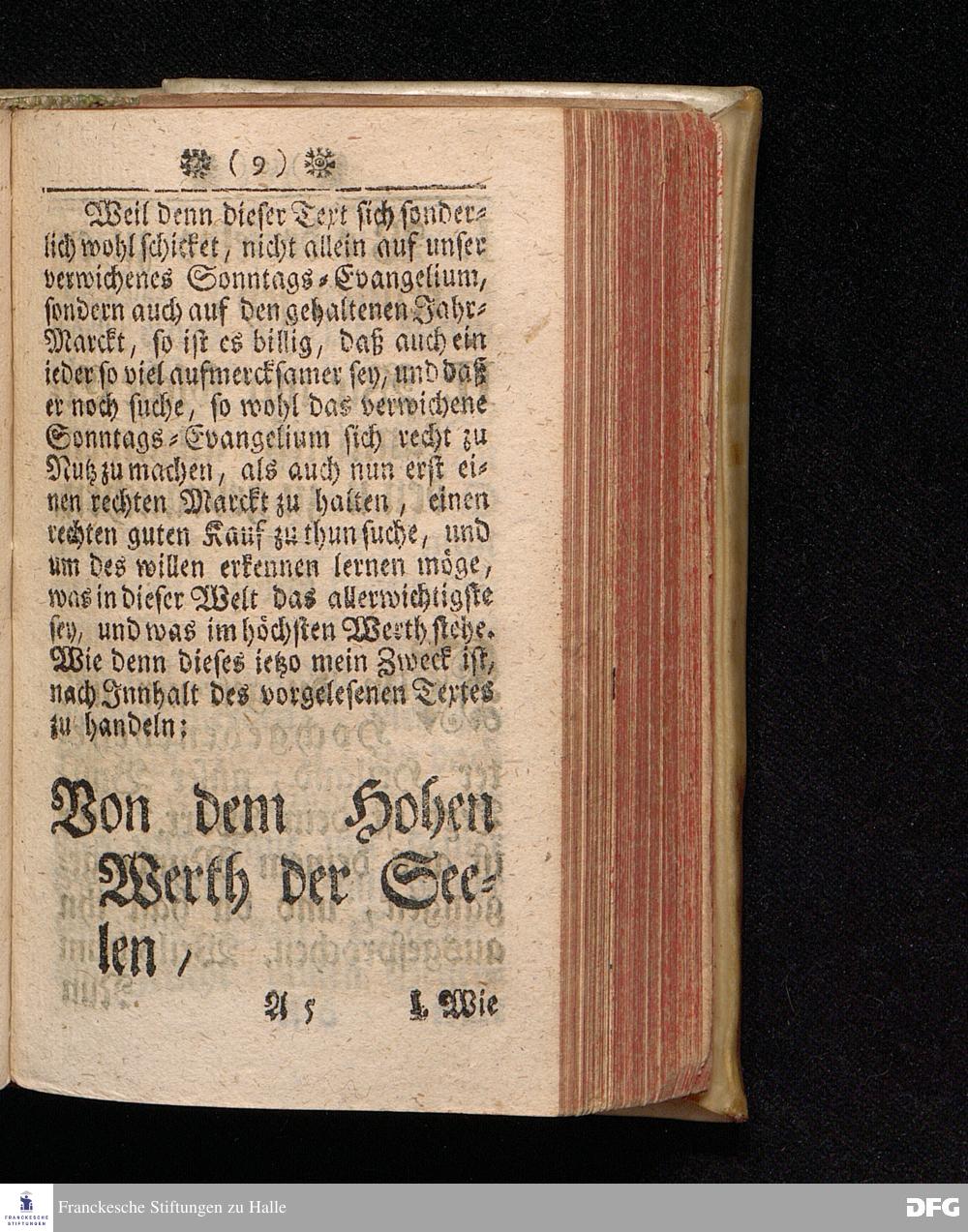 Der Hohe Werth der Seelen / In einer Buß=Predigt über Marc.VIII, 36. Am 5.Jun.MDCCXIX. In der St.Georgen=Kirche zu Glaucha an Halle vorgestellet, Von Aug.Herm.Francken, SS.Theol.Prof.und Past. zu St.Ulrich, und des hiesigen Gymnasii Schol. HALLE, In Verleg. des Waysen=Hauses. MDCCXIX.