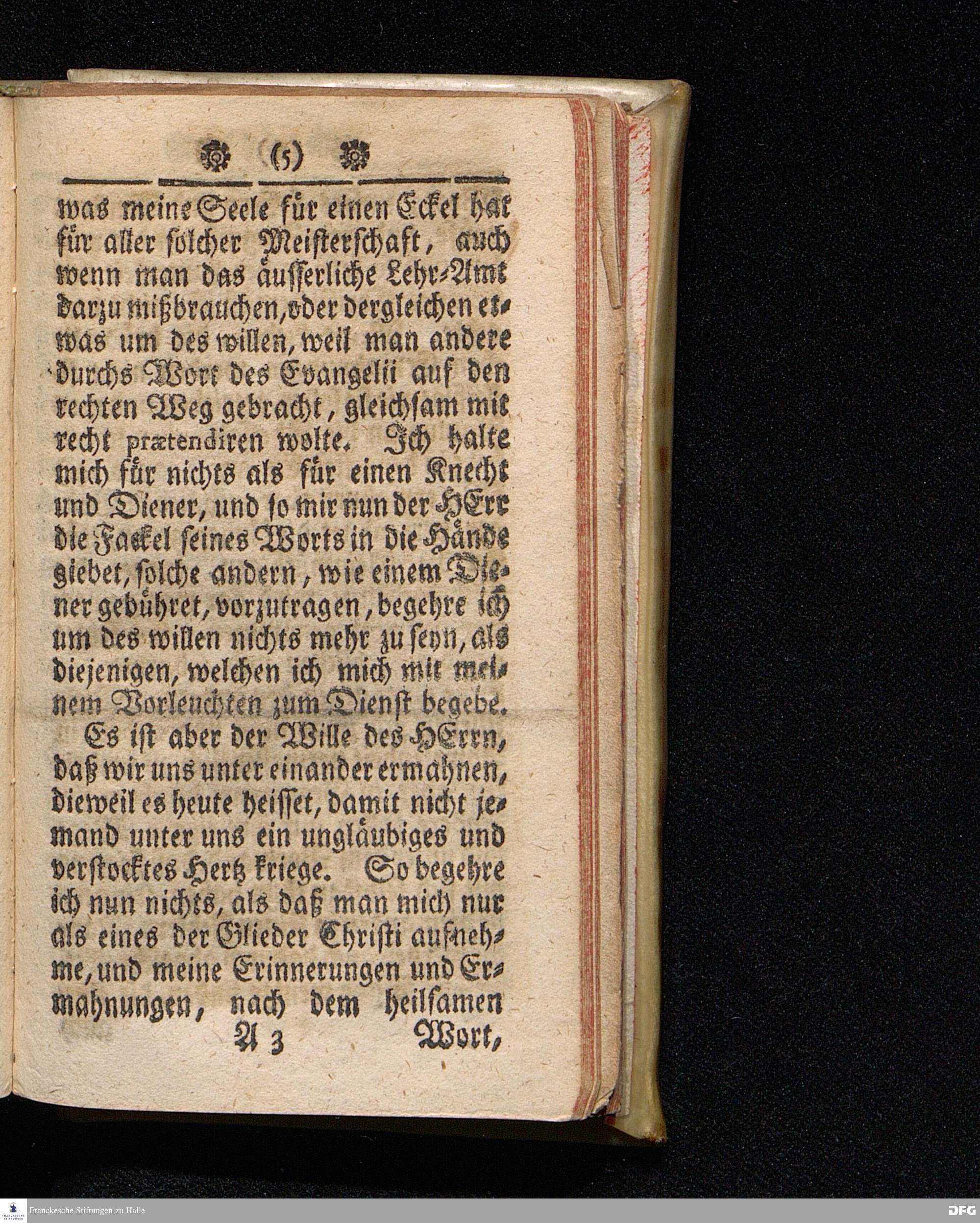 August Herrmann[!] Franckens / S.S.Theol.Prof.P.Ord. und Past.Vlric. Zweyfache Schriftliche Ansprache An Einige auswärtige Christliche Freunde / etliche besondere zum Christenthum gehörige Puncte betreffend / Auf Begehren zum Druck gegeben Anno 1701. Andere Auflage. HALLE, In Verlegung des Wäysen=Hauses, 1723.