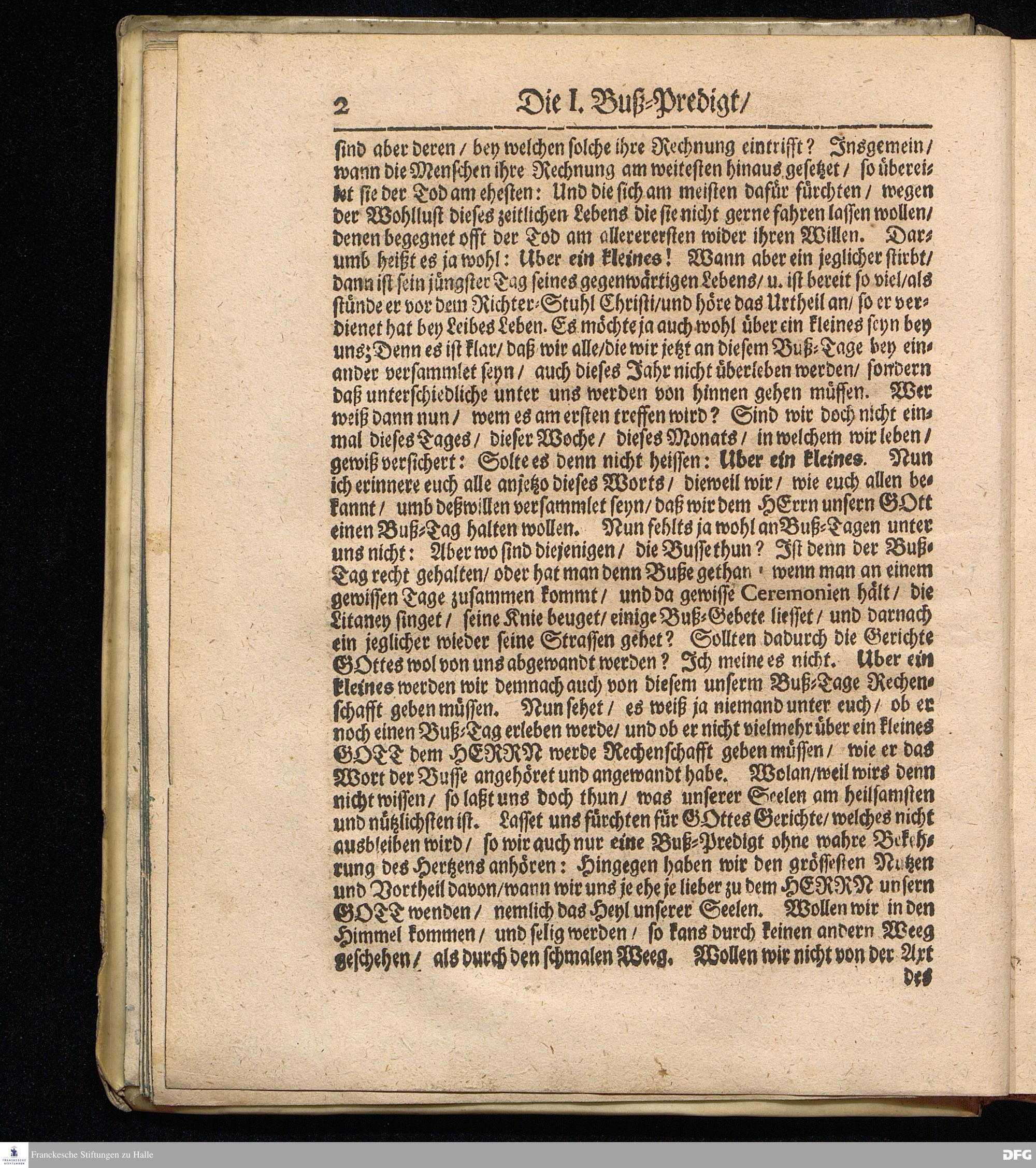 Väterliche Ermahnung unseres Gottes zur rechtschaffenen Besserung des Lebens. Die andere Buß-Predigt den 7. Octobr. 1696. (Jerem. VI, 8.)
