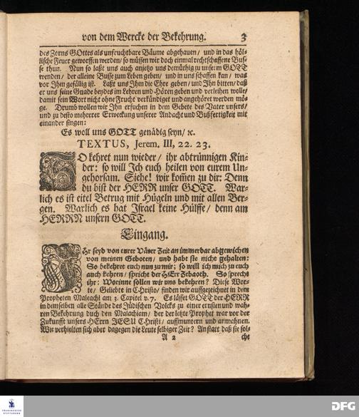 Von dem Wercke der Bekehrung. Die erste Buß-Predigt am 6. Maj 1696. (Jerem. III, 22-23.)