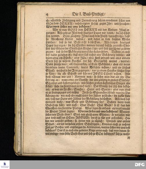 Von dem Wercke der Bekehrung. Die erste Buß-Predigt am 6. Maj 1696.