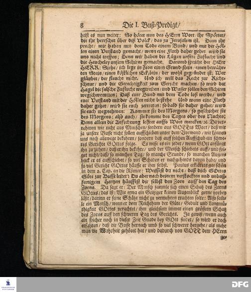 Väterliche Ermahnung unseres Gottes zur rechtschaffenen Besserung des Lebens. Die andere Buß-Predigt den 7. Octobr. 1696. (Jerem. VI, 8.)
