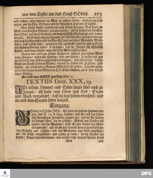 Von dem Eyffer um das Haus GOttes. Die zwölffte Buß-Predigt den 7.Jun. 1699. (Deut. 30, 19)