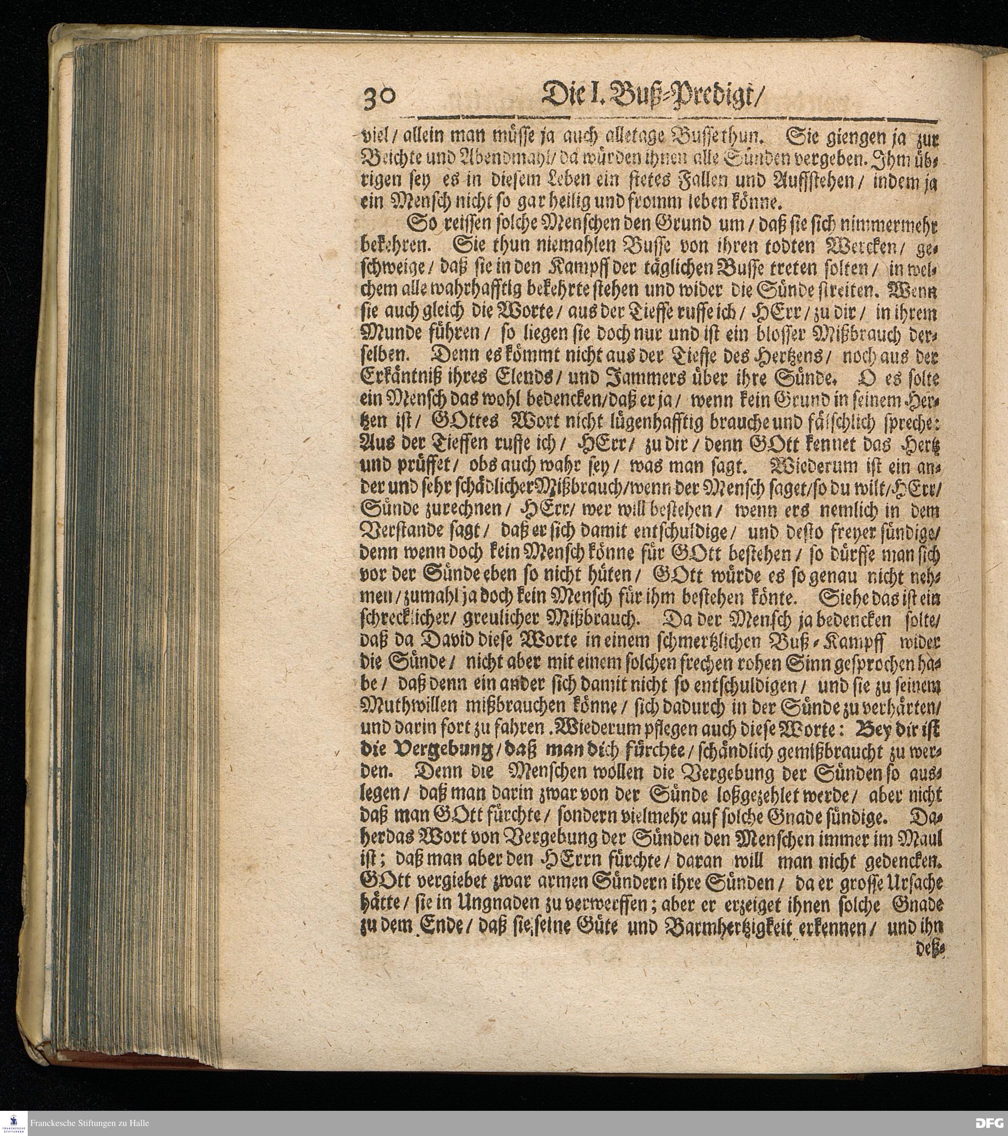 Von der Täglichen Busse der Bekehrten. Die I.Bußpredigt, den 6.Decembr.1702. (Ps.130.)