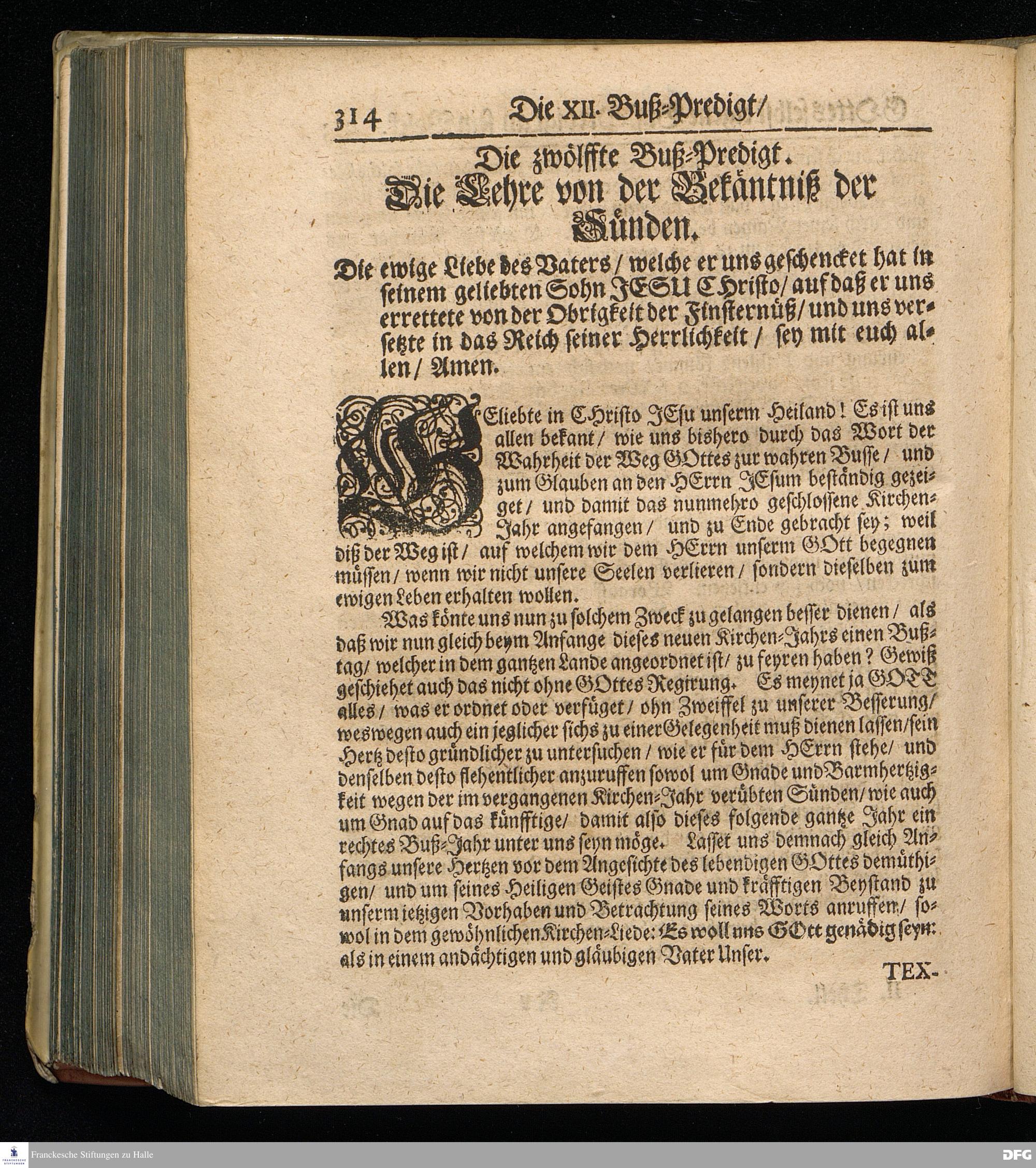 Die Lehre von der Bekäntniß der Sünden. Die XII.Buß=Predigt [ohne Datum].