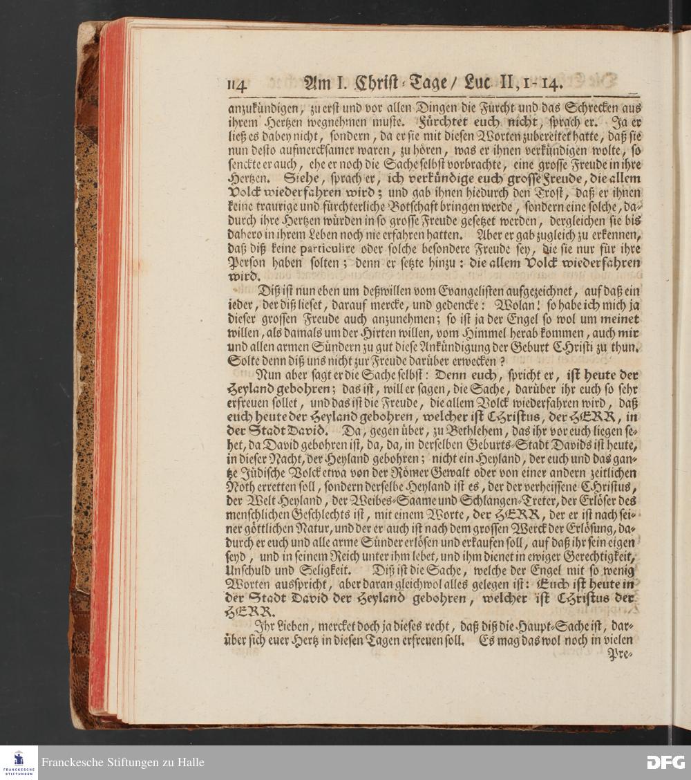 August Hermann Franckens, S.Theol.Prof.und Past. Sonn= und Fest=Tags=Predigten / Welche Theils in Halle, theils an verschiedenen auswärtigen Oertern, von wichtigen und auserlesenen Materien gehalten worden, Nebst Vorbereitung auf die hohen Feste und nützlichen Registern. Dritte Auflage. HALLE, gedruckt und verlegt im Wäysen=Hause MDCCXL. Mit Königl.Preuß.und Churfl.Brandenb.Privileg.