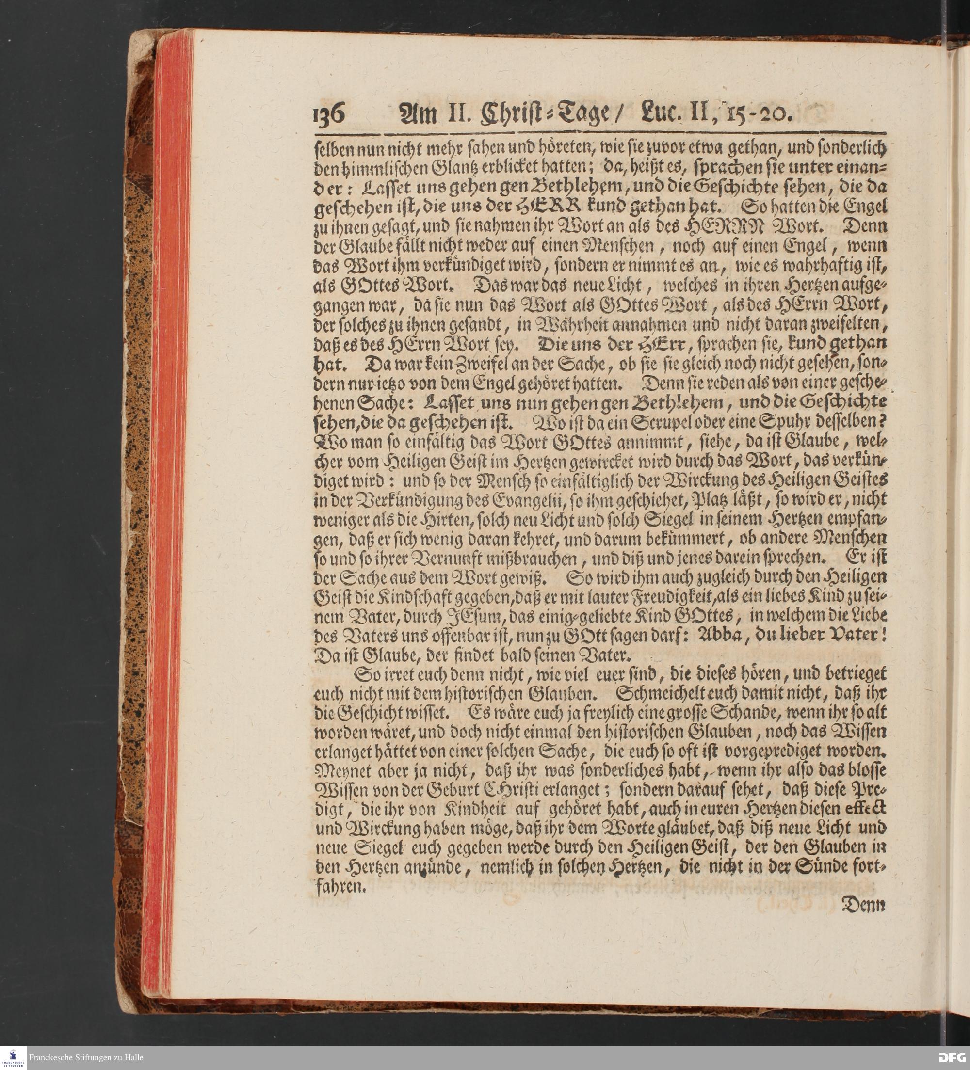 August Hermann Franckens, S.Theol.Prof.und Past. Sonn= und Fest=Tags=Predigten / Welche Theils in Halle, theils an verschiedenen auswärtigen Oertern, von wichtigen und auserlesenen Materien gehalten worden, Nebst Vorbereitung auf die hohen Feste und nützlichen Registern. Dritte Auflage. HALLE, gedruckt und verlegt im Wäysen=Hause MDCCXL. Mit Königl.Preuß.und Churfl.Brandenb.Privileg.