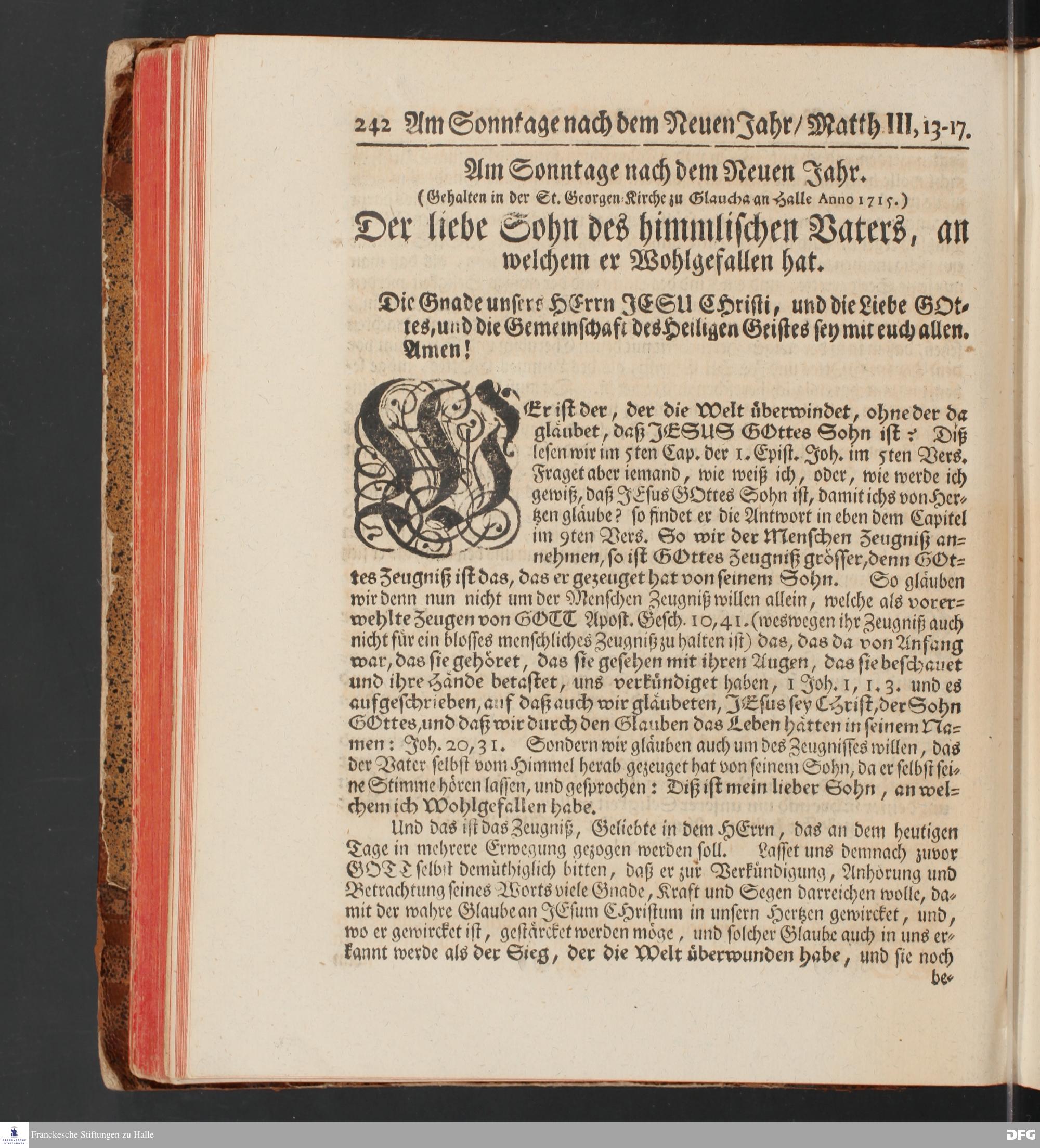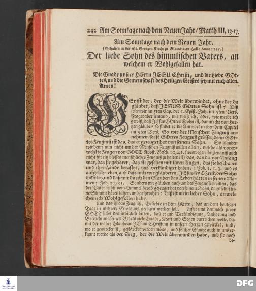 August Hermann Franckens, S.Theol.Prof.und Past. Sonn= und Fest=Tags=Predigten / Welche Theils in Halle, theils an verschiedenen auswärtigen Oertern, von wichtigen und auserlesenen Materien gehalten worden, Nebst Vorbereitung auf die hohen Feste und nützlichen Registern. Dritte Auflage. HALLE, gedruckt und verlegt im Wäysen=Hause MDCCXL. Mit Königl.Preuß.und Churfl.Brandenb.Privileg.