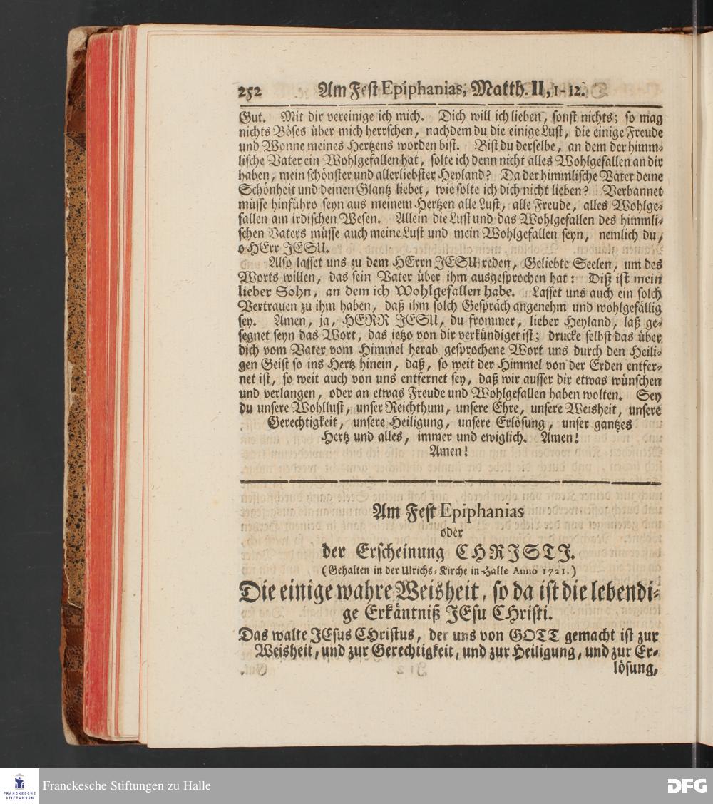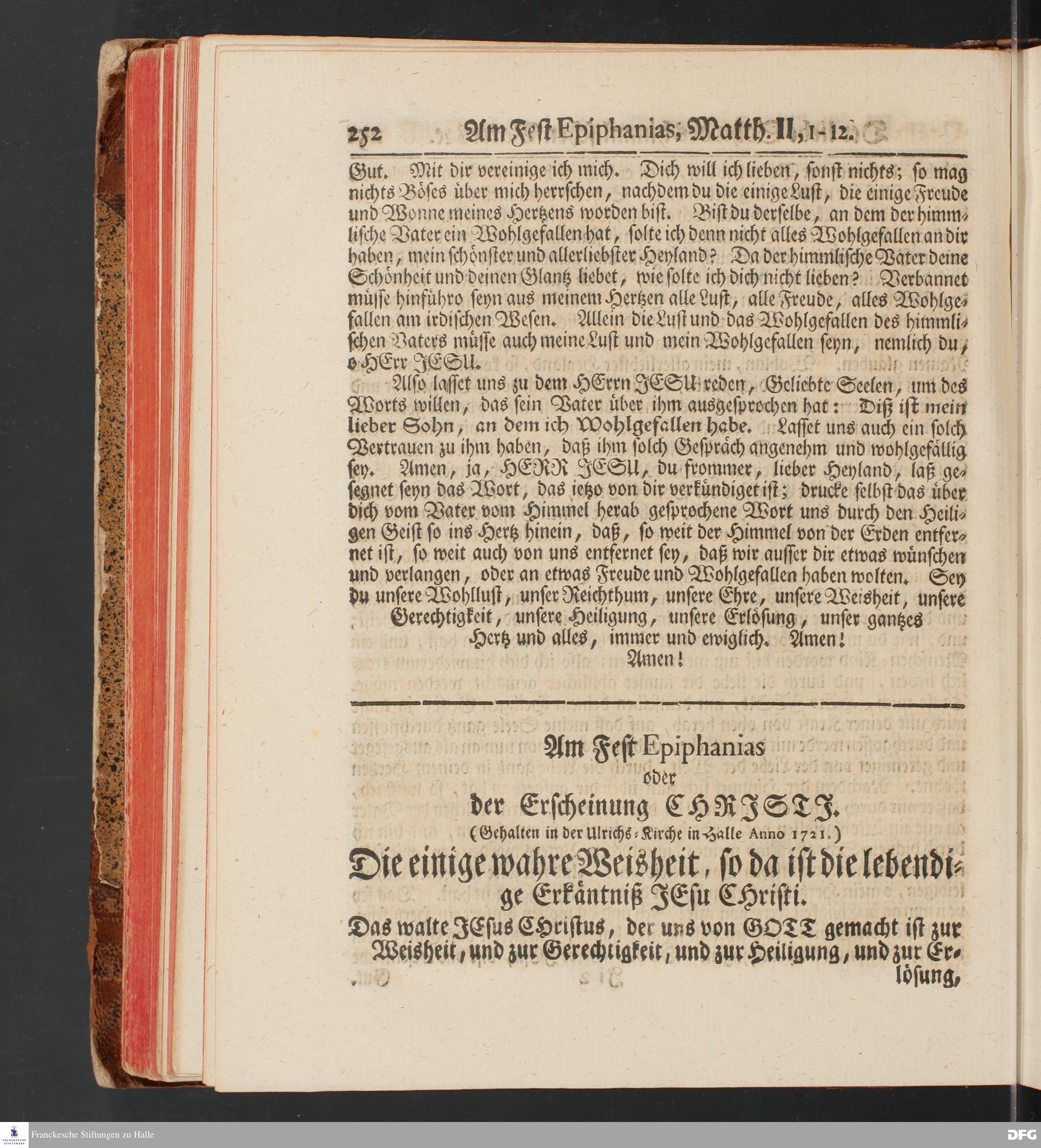 August Hermann Franckens, S.Theol.Prof.und Past. Sonn= und Fest=Tags=Predigten / Welche Theils in Halle, theils an verschiedenen auswärtigen Oertern, von wichtigen und auserlesenen Materien gehalten worden, Nebst Vorbereitung auf die hohen Feste und nützlichen Registern. Dritte Auflage. HALLE, gedruckt und verlegt im Wäysen=Hause MDCCXL. Mit Königl.Preuß.und Churfl.Brandenb.Privileg.