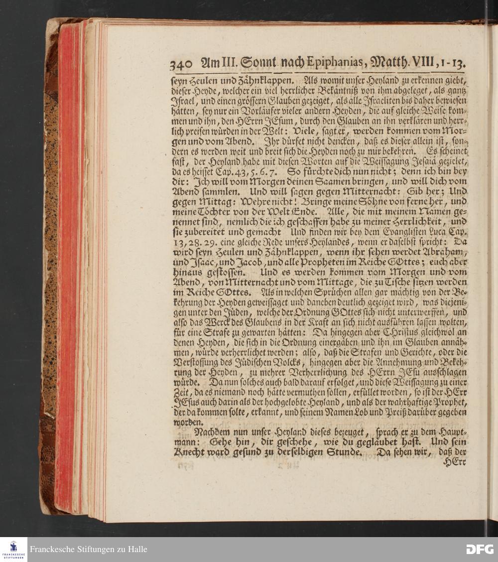 August Hermann Franckens, S.Theol.Prof.und Past. Sonn= und Fest=Tags=Predigten / Welche Theils in Halle, theils an verschiedenen auswärtigen Oertern, von wichtigen und auserlesenen Materien gehalten worden, Nebst Vorbereitung auf die hohen Feste und nützlichen Registern. Dritte Auflage. HALLE, gedruckt und verlegt im Wäysen=Hause MDCCXL. Mit Königl.Preuß.und Churfl.Brandenb.Privileg.