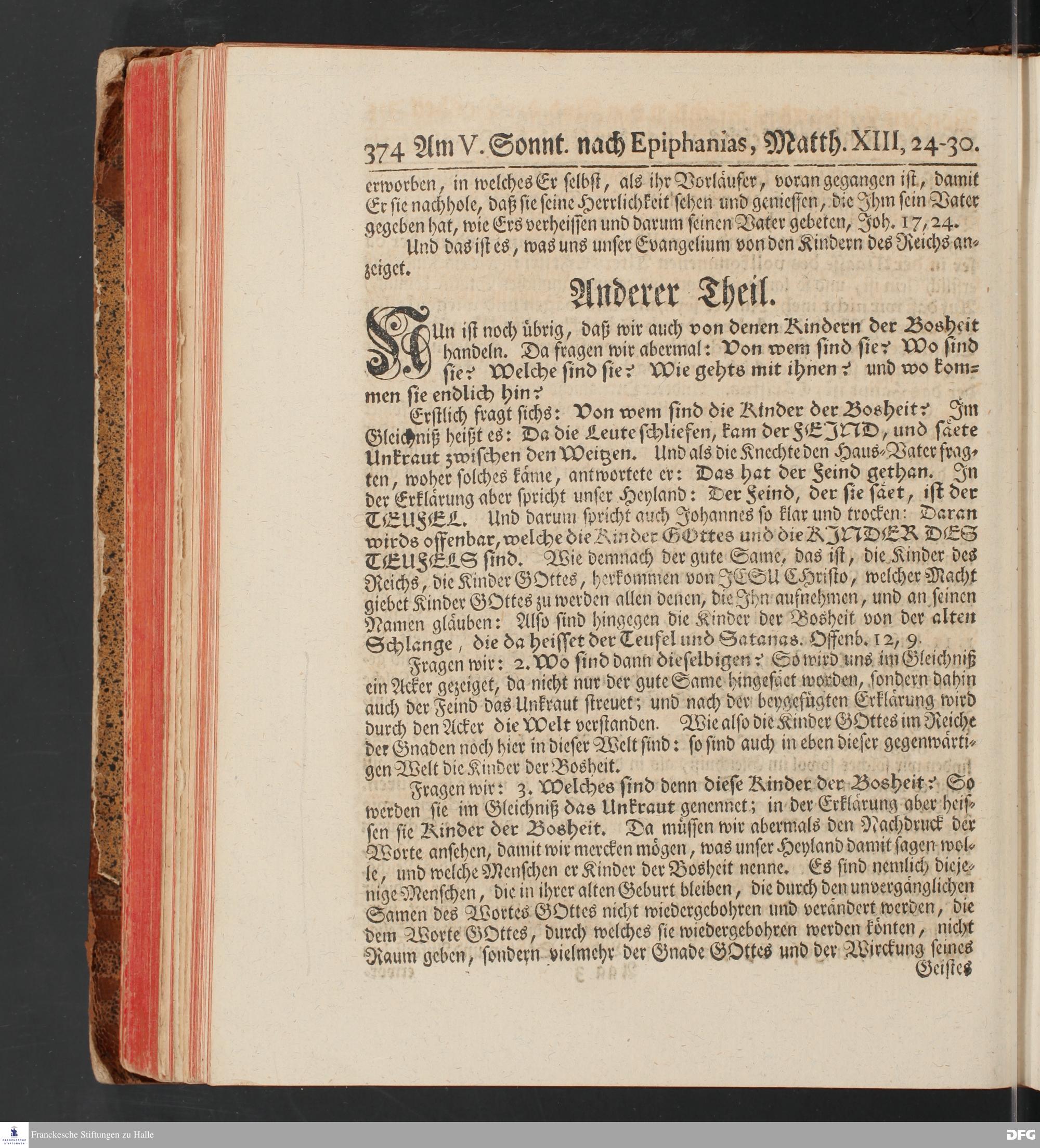 August Hermann Franckens, S.Theol.Prof.und Past. Sonn= und Fest=Tags=Predigten / Welche Theils in Halle, theils an verschiedenen auswärtigen Oertern, von wichtigen und auserlesenen Materien gehalten worden, Nebst Vorbereitung auf die hohen Feste und nützlichen Registern. Dritte Auflage. HALLE, gedruckt und verlegt im Wäysen=Hause MDCCXL. Mit Königl.Preuß.und Churfl.Brandenb.Privileg.