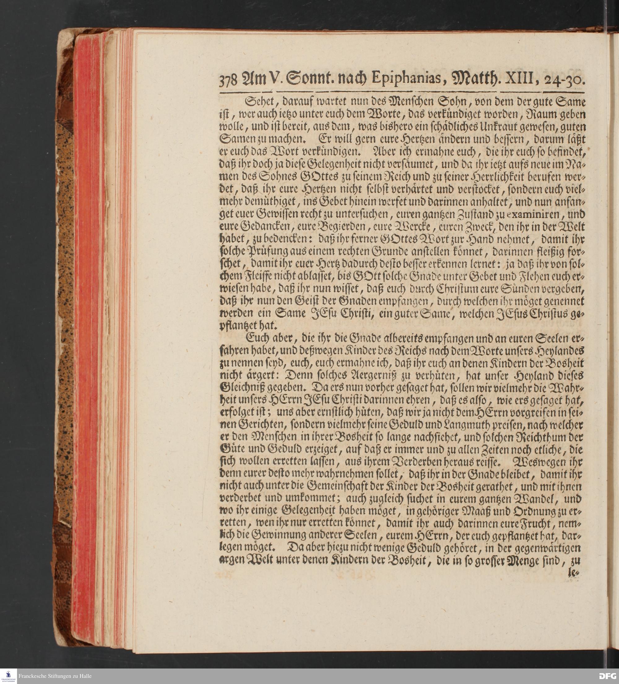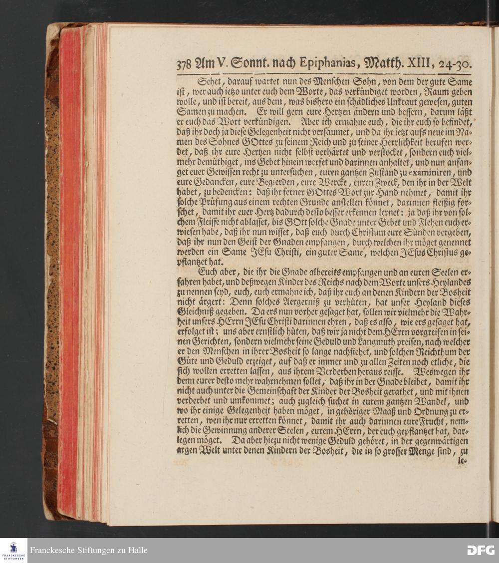 August Hermann Franckens, S.Theol.Prof.und Past. Sonn= und Fest=Tags=Predigten / Welche Theils in Halle, theils an verschiedenen auswärtigen Oertern, von wichtigen und auserlesenen Materien gehalten worden, Nebst Vorbereitung auf die hohen Feste und nützlichen Registern. Dritte Auflage. HALLE, gedruckt und verlegt im Wäysen=Hause MDCCXL. Mit Königl.Preuß.und Churfl.Brandenb.Privileg.