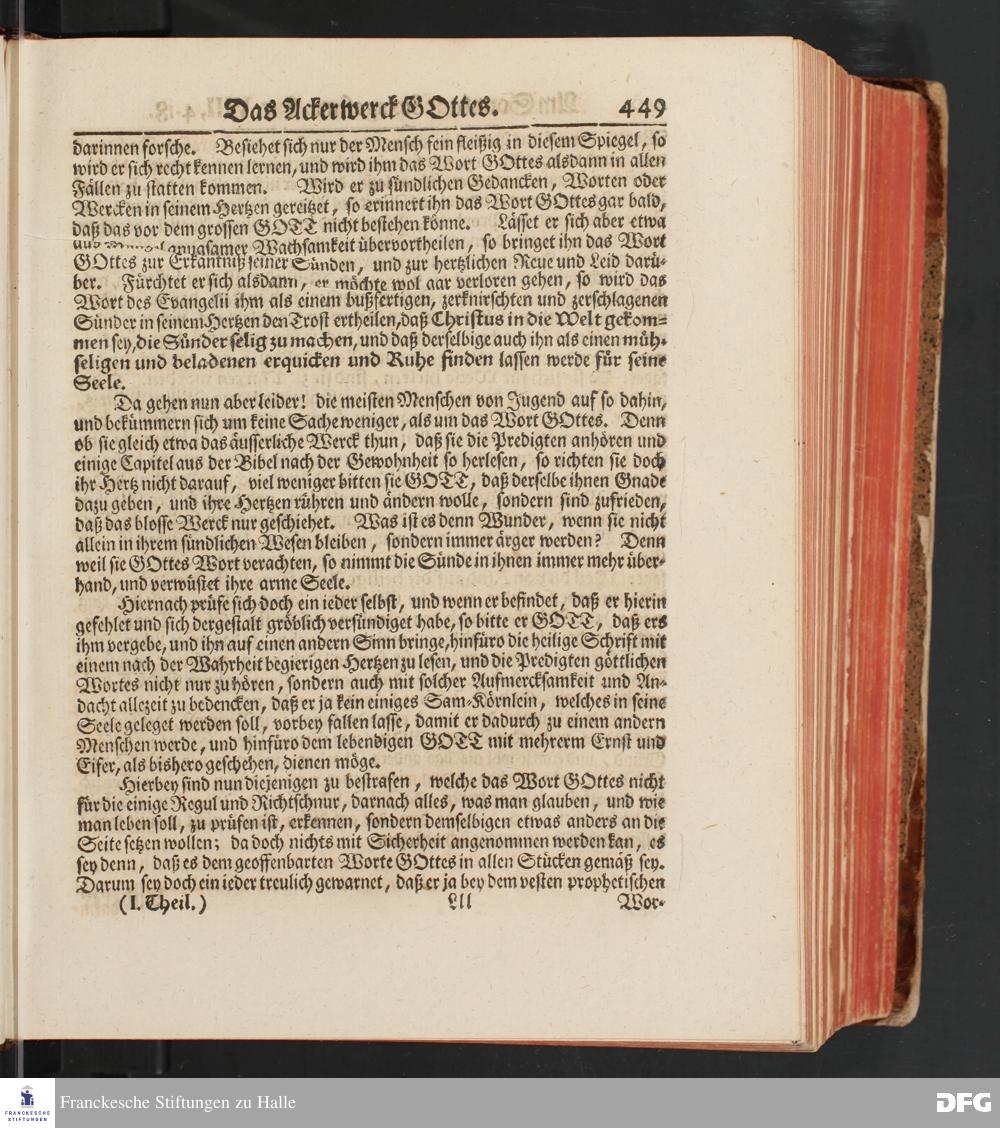 August Hermann Franckens, S.Theol.Prof.und Past. Sonn= und Fest=Tags=Predigten / Welche Theils in Halle, theils an verschiedenen auswärtigen Oertern, von wichtigen und auserlesenen Materien gehalten worden, Nebst Vorbereitung auf die hohen Feste und nützlichen Registern. Dritte Auflage. HALLE, gedruckt und verlegt im Wäysen=Hause MDCCXL. Mit Königl.Preuß.und Churfl.Brandenb.Privileg.
