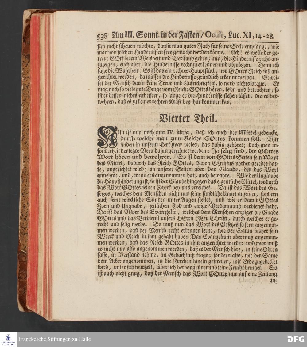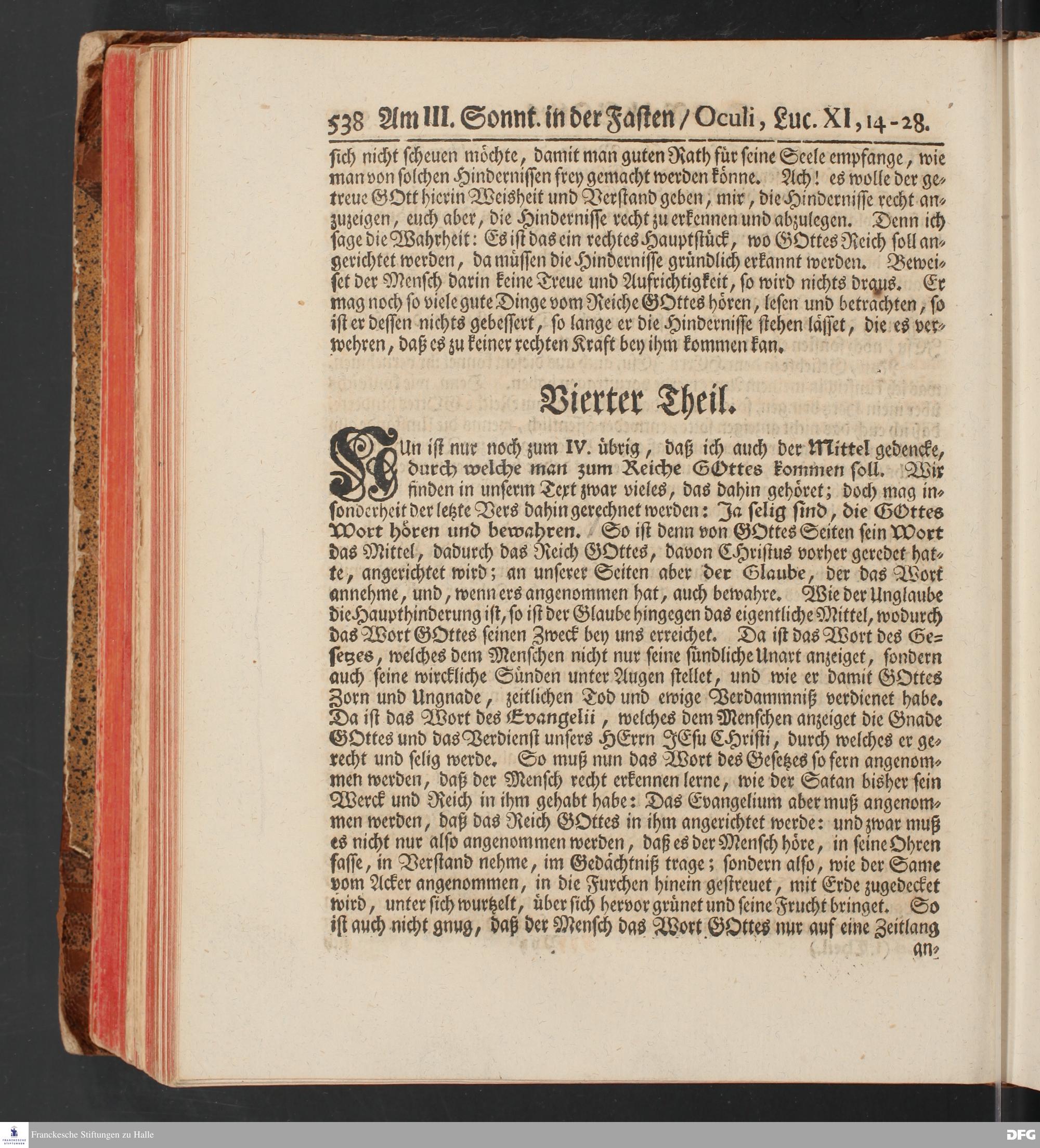 August Hermann Franckens, S.Theol.Prof.und Past. Sonn= und Fest=Tags=Predigten / Welche Theils in Halle, theils an verschiedenen auswärtigen Oertern, von wichtigen und auserlesenen Materien gehalten worden, Nebst Vorbereitung auf die hohen Feste und nützlichen Registern. Dritte Auflage. HALLE, gedruckt und verlegt im Wäysen=Hause MDCCXL. Mit Königl.Preuß.und Churfl.Brandenb.Privileg.