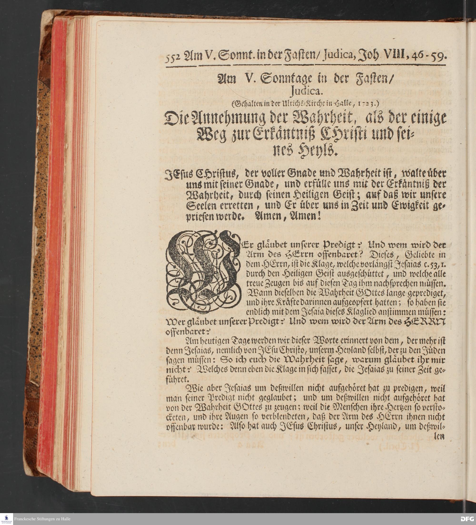 August Hermann Franckens, S.Theol.Prof.und Past. Sonn= und Fest=Tags=Predigten / Welche Theils in Halle, theils an verschiedenen auswärtigen Oertern, von wichtigen und auserlesenen Materien gehalten worden, Nebst Vorbereitung auf die hohen Feste und nützlichen Registern. Dritte Auflage. HALLE, gedruckt und verlegt im Wäysen=Hause MDCCXL. Mit Königl.Preuß.und Churfl.Brandenb.Privileg.