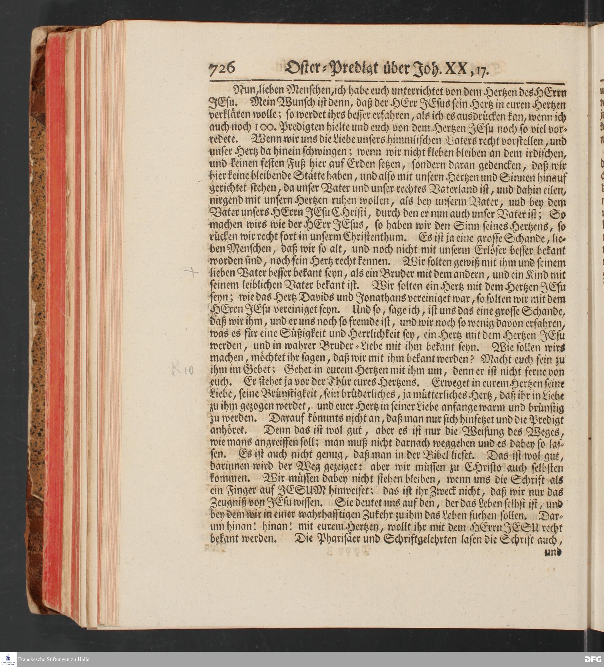August Hermann Franckens, S.Theol.Prof.und Past. Sonn= und Fest=Tags=Predigten / Welche Theils in Halle, theils an verschiedenen auswärtigen Oertern, von wichtigen und auserlesenen Materien gehalten worden, Nebst Vorbereitung auf die hohen Feste und nützlichen Registern. Dritte Auflage. HALLE, gedruckt und verlegt im Wäysen=Hause MDCCXL. Mit Königl.Preuß.und Churfl.Brandenb.Privileg.