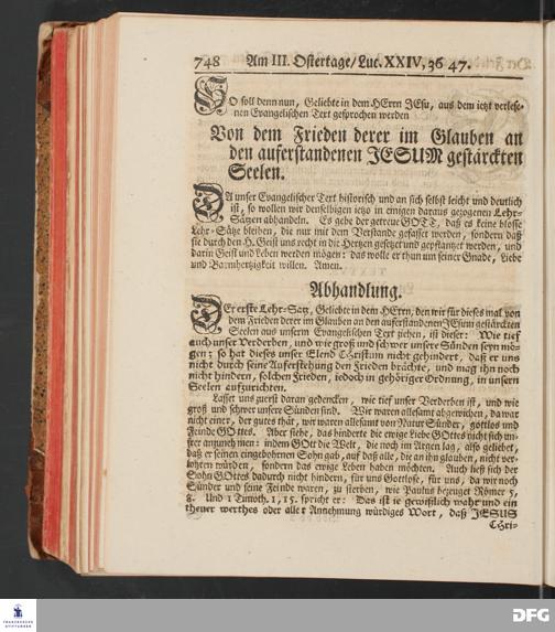 August Hermann Franckens, S.Theol.Prof.und Past. Sonn= und Fest=Tags=Predigten / Welche Theils in Halle, theils an verschiedenen auswärtigen Oertern, von wichtigen und auserlesenen Materien gehalten worden, Nebst Vorbereitung auf die hohen Feste und nützlichen Registern. Dritte Auflage. HALLE, gedruckt und verlegt im Wäysen=Hause MDCCXL. Mit Königl.Preuß.und Churfl.Brandenb.Privileg.