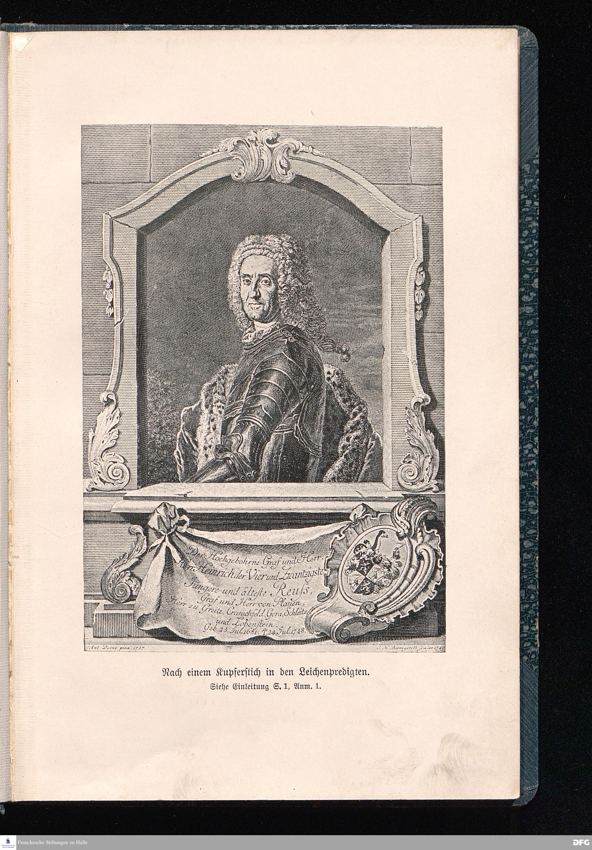A.H.Franckes Briefe an den Grafen Heinrich XXIV. j.L. Reuß zu Köstritz und seine Gemahlin Eleonore aus den Jahren 1704 bis 1727 als Beitrag zur Geschichte des Pietismus herausgegeben von Dr.Berthold Schmidt Fürstl.Reuß j.L.Archivrat und Lic.theol. Otto Meusel Gymnasialoberlehrer in Schleiz. Leipzig, Verlag der Dürr'schen Buchhandlung 1905.